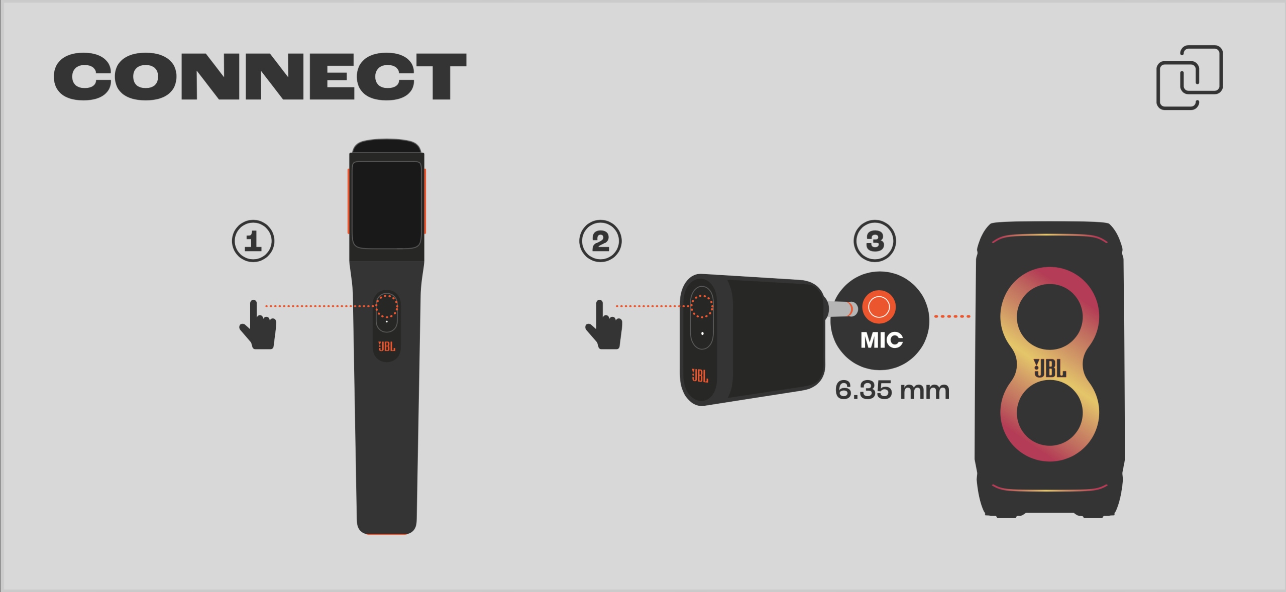 Мікрофони можна використовувати з будь-якими колонками JBL PartyBox, від PartyBox Encore до Ultimate!