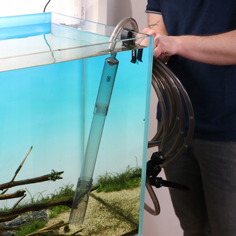 - Просте встановлення: підключіть мулоочисник за допомогою шланга до всмоктуючого насоса у крані. Після висмоктування мулу з землі перемістіть важіль на насосі біля крану та знову наповніть акваріум водою. вище акваріума). Очищення важкодоступних місць за допомогою мулоочисника: круглого перерізу з куточком