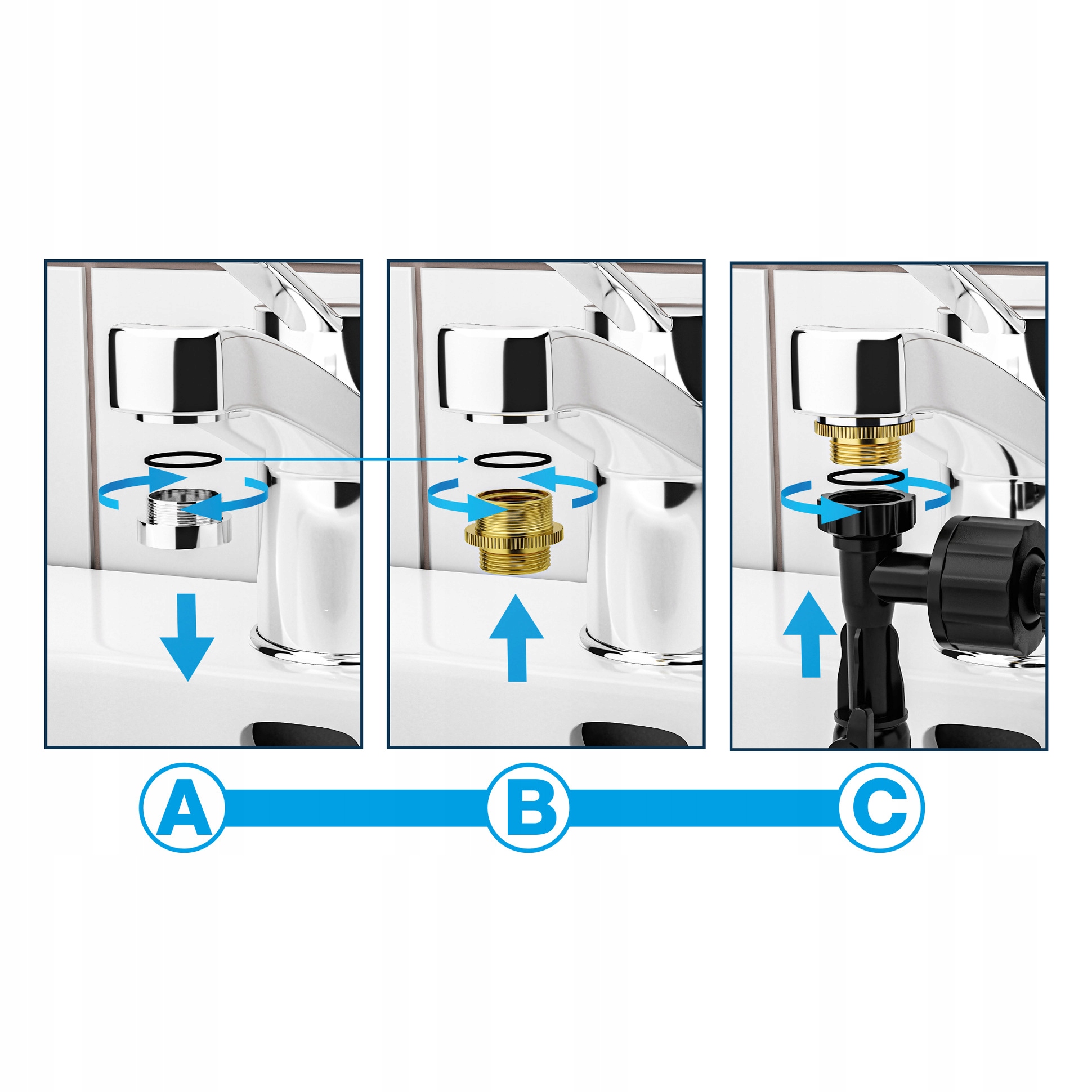 Жиклер має різьбове з'єднання 3/4". Його слід приєднати за допомогою перехідника (не входить до комплекту) до різьби крана (зазвичай M28x1; M22x1; M24x1)