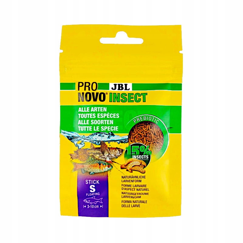 JBL ProNovo Insect Stick - це пребіотичнийосновний корм у формі дрібнозернистих паличок, призначений для всіх акваріумних рибок. Корм містить важливу сировину без штучних добавок, що робить його майже натуральним.