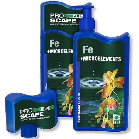 JBL ProScape Fe + Microelements базове добриво для рослин. Добриво призначене для використання в акваріумах "Aquascaping". Це резервуари, в яких переважають рослини, без риби чи безхребетних або їх дуже мало. Таким чином зменшується надходження важливих для рослин елементів, таких як азот і фосфор. Дефіцит мінеральних речовин можна легко поповнити за допомогою добрив у поєднанні з відповідним освітленням і постачанням CO2.