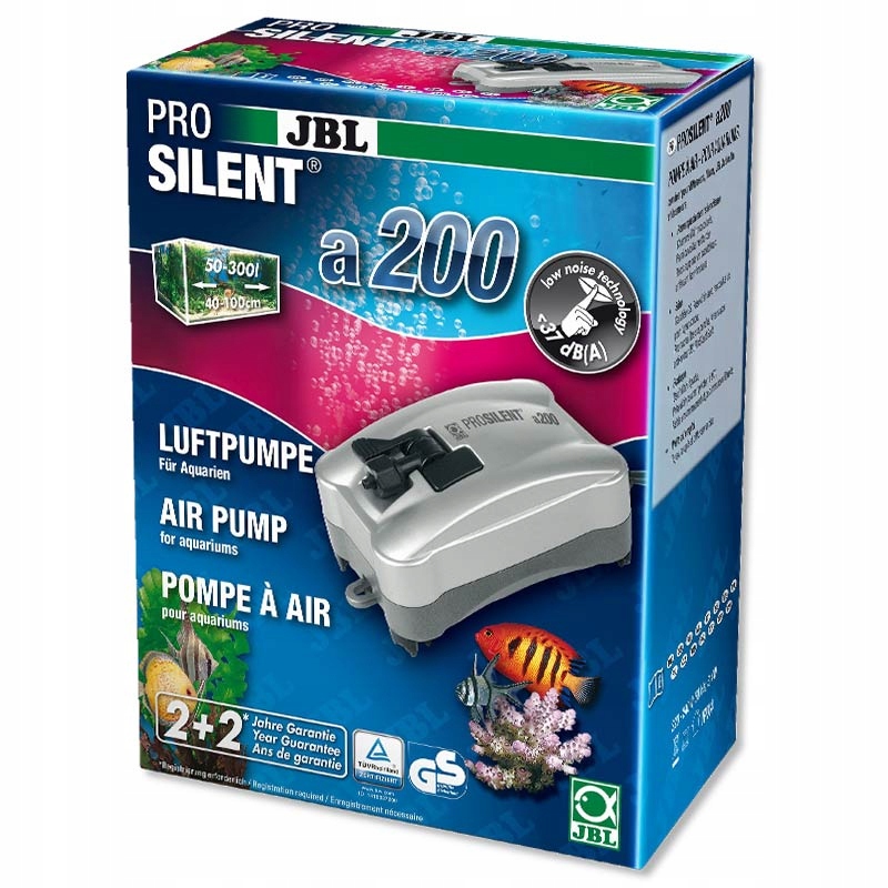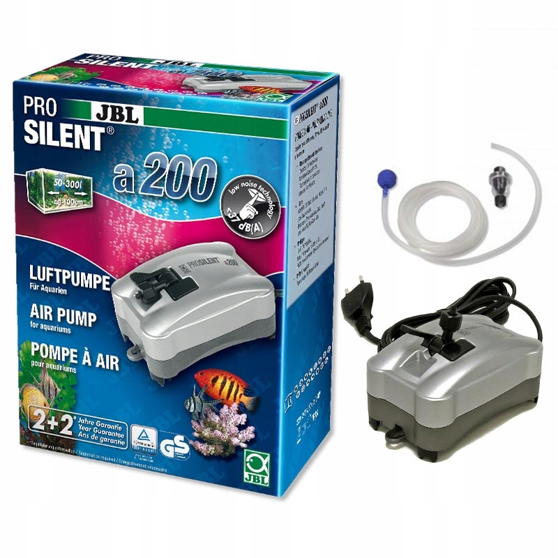 Придбання сучасної аераційної помпи JBL ProSilent – дуже вдале рішення. Завдяки глушнику звуку цей насос працює дуже тихо. Насос JBL ProSilent майже не чути. Точне виготовлення та високоякісний матеріал гарантують надзвичайно довгий термін служби насоса. Jbl ProSilent - це насос німецького виробництва, який не має собі рівних у багатьох аспектах. По-перше, він дуже естетичний і його добре видно, по-друге, він має ручку, завдяки якій його можна легко повісити на стінку шафи, по-третє, він надзвичайно міцний і безвідмовний. Насос можна використовувати для: аерації акваріума, аерації соляних креветок, а також для білкових скиммерів.