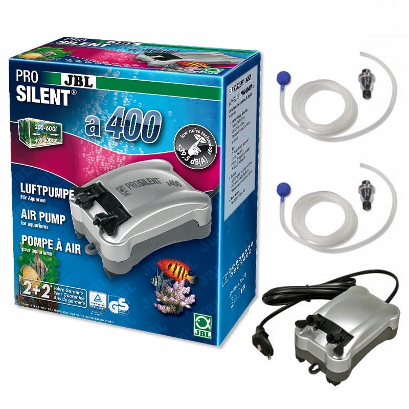 Придбання сучасної аераційної помпи JBL ProSilent – дуже правильне рішення. Завдяки глушнику звуку цей насос працює дуже тихо. Насос JBL ProSilent майже не чути. Точне виготовлення та високоякісний матеріал гарантують надзвичайно довгий термін служби насоса. Jbl ProSilent - це насос німецького виробництва, який не має собі рівних у багатьох аспектах. По-перше, він дуже естетичний і його добре видно, по-друге, він має ручку, завдяки якій його можна легко повісити на стінку шафи, по-третє, він надзвичайно міцний і безвідмовний. Насос можна використовувати для: аерації акваріума, аерації соляних креветок, а також для білкових скиммерів.