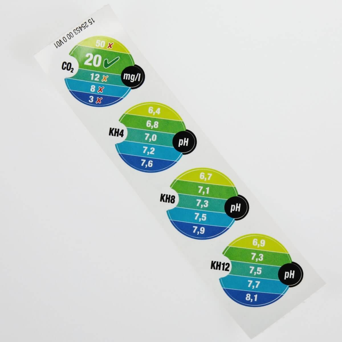 Перевіряйте результати тесту кілька разів протягом дня. Пам’ятайте, що не можна змінювати параметри води надто швидко, особливо pH. Якщо ви хочете точно налаштувати систему дозування CO2, виконайте додатковий тест, наприклад, за допомогоюJBL ProAquaTest CO2 Direct.