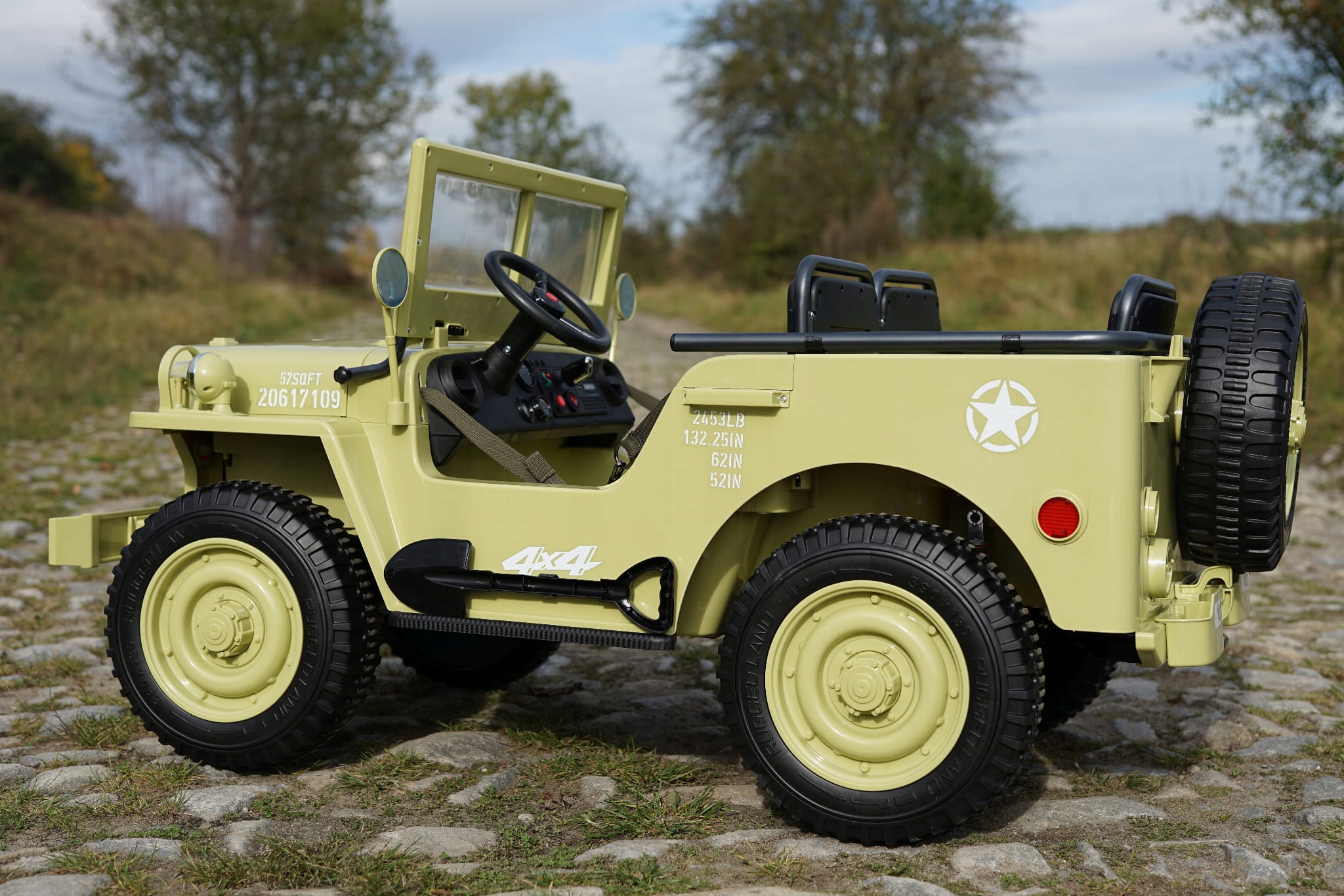 JEEP WOJSKOWY RETRO 4X4 24V 480W TERENOWY ELEKTRYCZNY AUTO AKUMULATOR PILOT