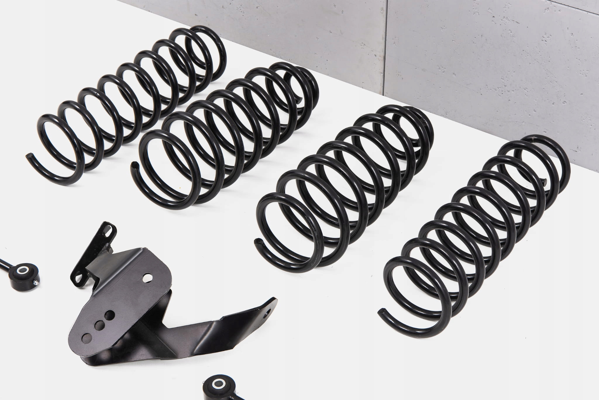 Комплект піднімає підвіску автомобіля на 2,5" (6,35 см). Ліфт-комплект дозволяє встановити колеса розміром: 35". Пружини були розроблені спеціально для моделі JEEP WRANGLER Jk. Монтаж елементів не потребує додаткових доопрацювань автомобіля, він на 100% узгоджується із заводськими елементами та кріпиться за допомогою гвинтів. Не вимагає свердління або ріжучих елементів. Він дозволяє зберегти заводські параметри комфорту і ходових якостей. Ми рекомендуємо професійне встановлення.