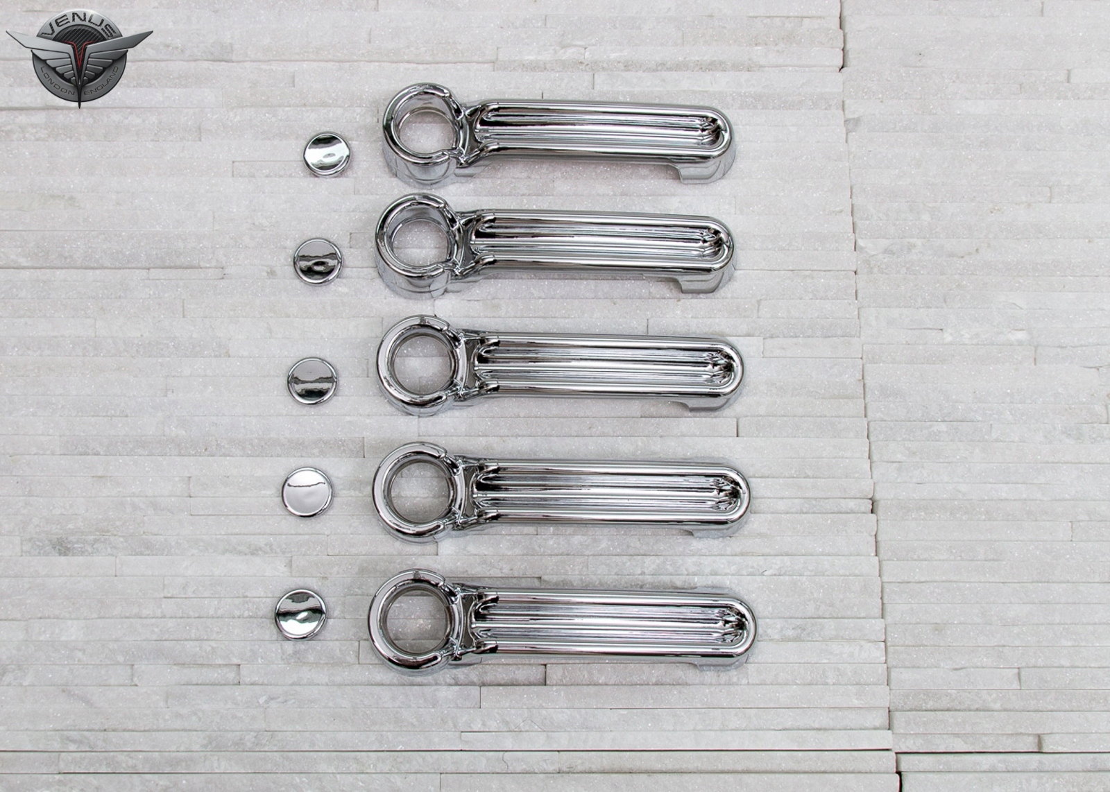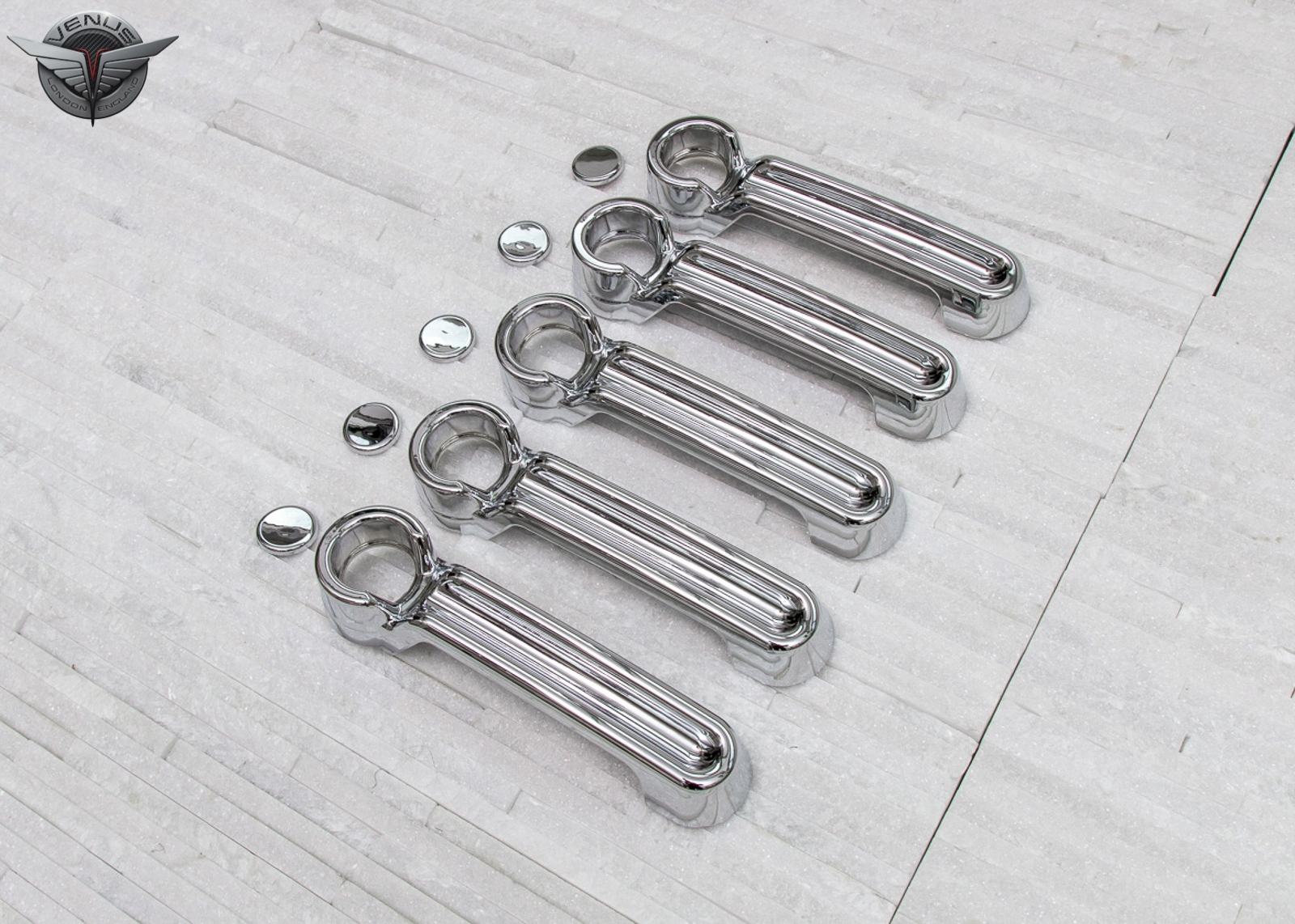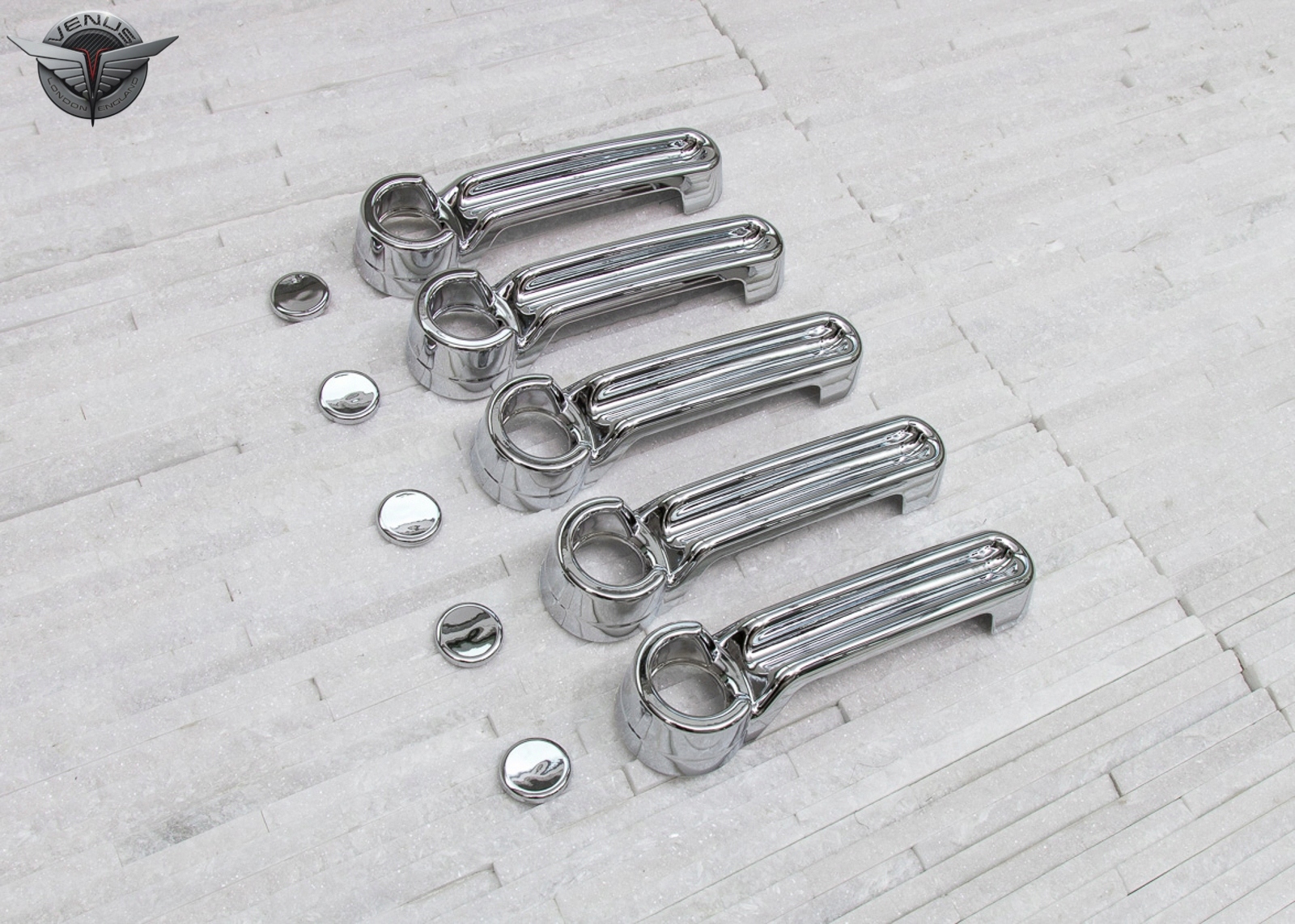 Модель. Ці елементи виготовлені з високоякісного хромованого пластику ABS. Легка та безпечна збірка, це можна зробити самостійно. Накладки встановлені двосторонньою 3 -метровою скотчкою клейкою стрічкою, нанесеною зсередини. Їх слід наносити на знежирену поверхню з видобувним бензином або духом, при позитивних температурах від 18 градусів С. Включає набір з п'яти ручок перекриття.
