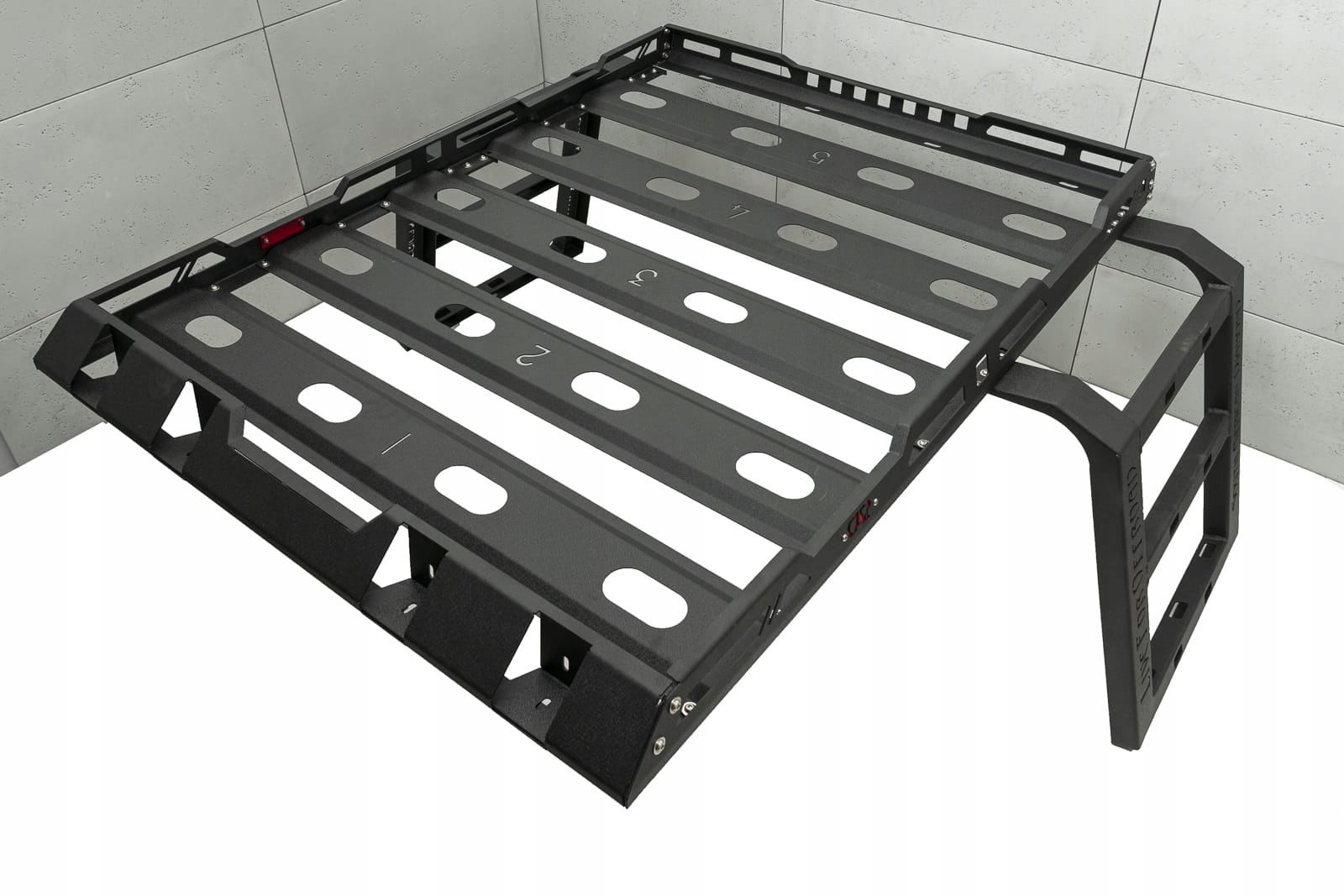 Ідеально підходить для даху Wrangler, ідеально підходить для транспортування додаткового багажу для експедицій, туристичного спорядження тощо. Дозволяє просто та швидко закріпити вантаж, що транспортується. Інтегрована драбина полегшує прийняття більш зручного положення під час розміщення вантажу на даху, що значно покращує процес. Міцна, але легка конструкція багажника дозволяє перевозити до 100 кг вантажу. Спеціальна конструкція дозволяє встановити до 4 додаткових світлодіодних ламп.