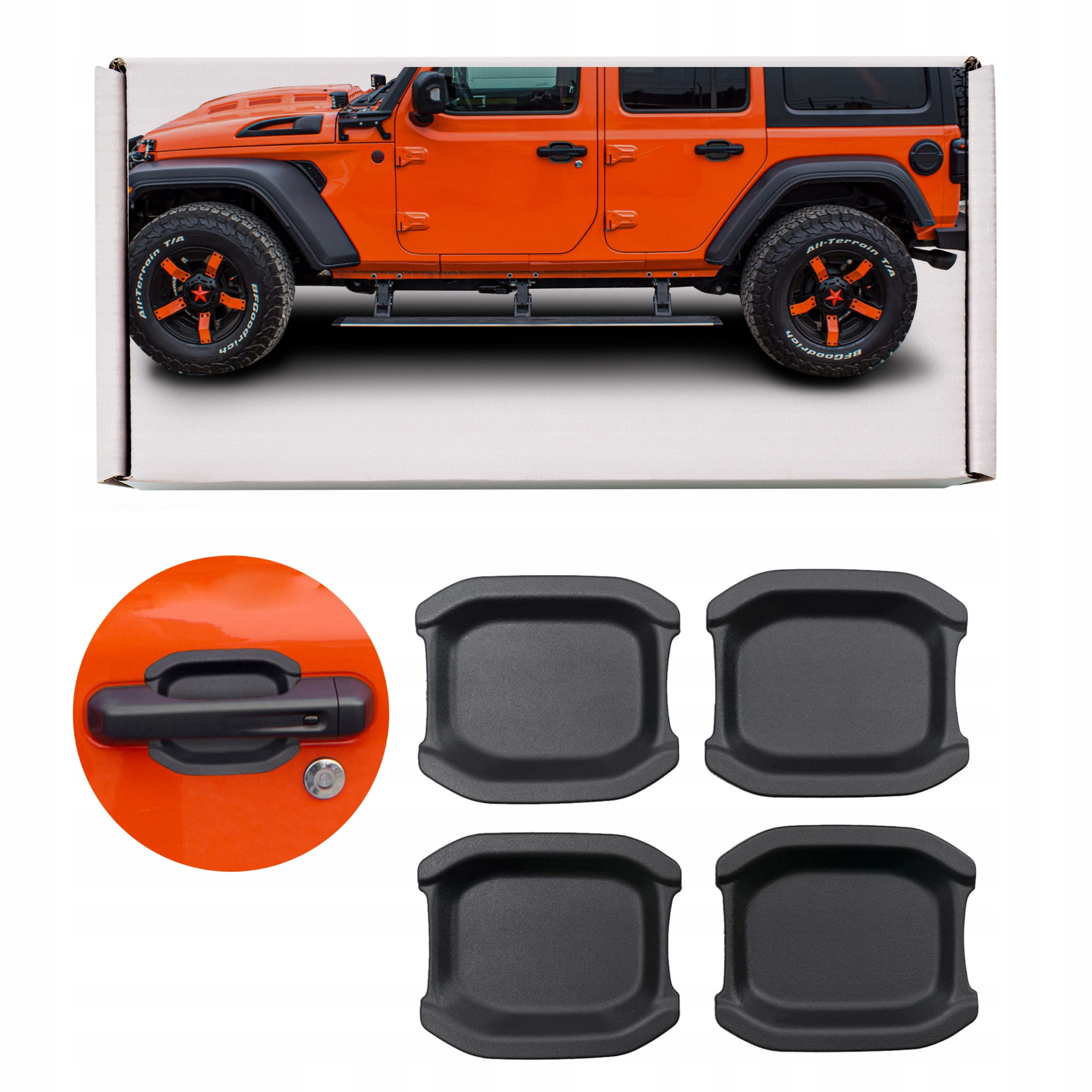 Ручні прокладки-це елемент, що ідеально підходить для позашляхового стилю. Вони відрізняються високою естетикою, захищають та прикрашають поверхню під дверними ручками. Подушки розроблені для ідеального поєднання з іншими елементами обробки Wrangler, завдяки яким вони дозволяють створити цілісну, вишукану стиль автомобіля. Зроблено з високоякісної абс у чорному.