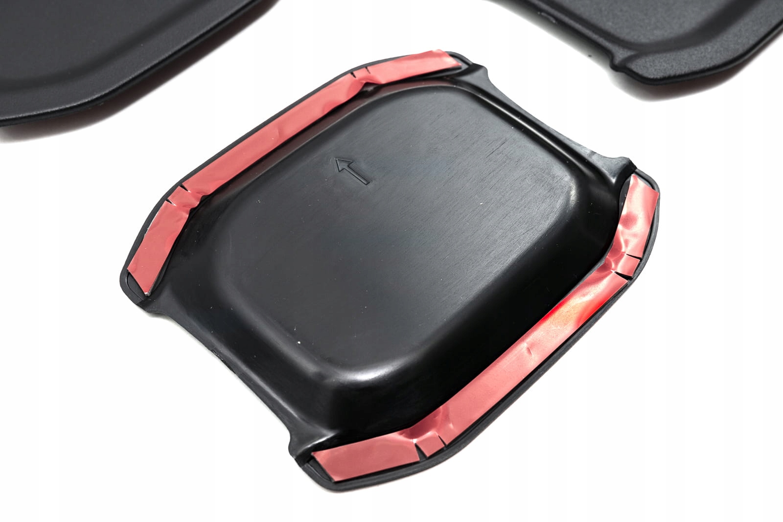 Набір містить чотири прокладки. Елементи встановлюються за допомогою скотчу 3M, що тикає стрічку, нанесену на їх нижню сторону. Просто засуджуйте кріпильний простір за допомогою бензину або духу для видобутку, очистіть стрічку, покладіть елемент і натисніть його у відповідне положення. Установка повинна здійснюватися при позитивних температурах з 18 градусів Цельсія, якщо це необхідно, місце склеювання може бути нагріти (наприклад, із сушаркою). Ми рекомендуємо збори в професійному семінарі.
