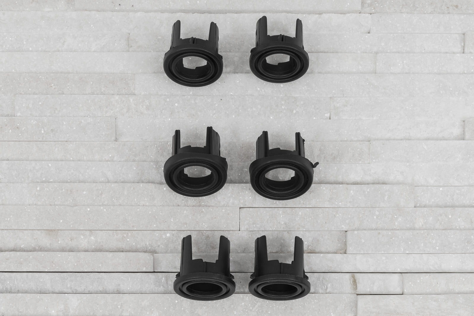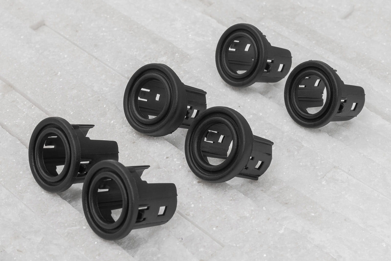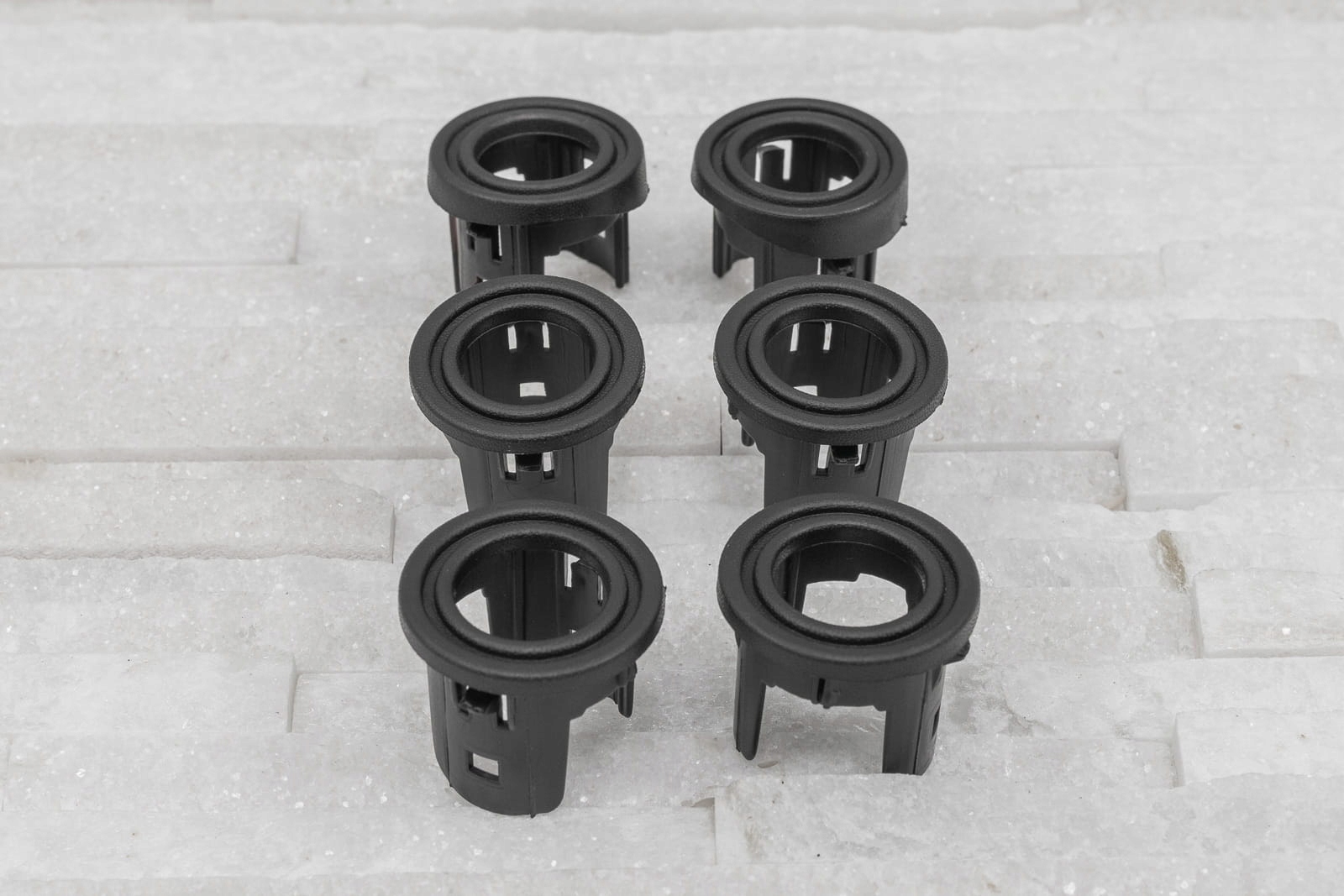 Набір кріплень/кошиків для датчиків паркування PDC. Кріплення необхідні для встановлення датчиків паркування. Продукт виготовлений з високоякісної абс у чорному кольорі. Вкладення відповідатимуть усім бамперам, адаптованим до системи PDC. Набір включає 6 кріплення.