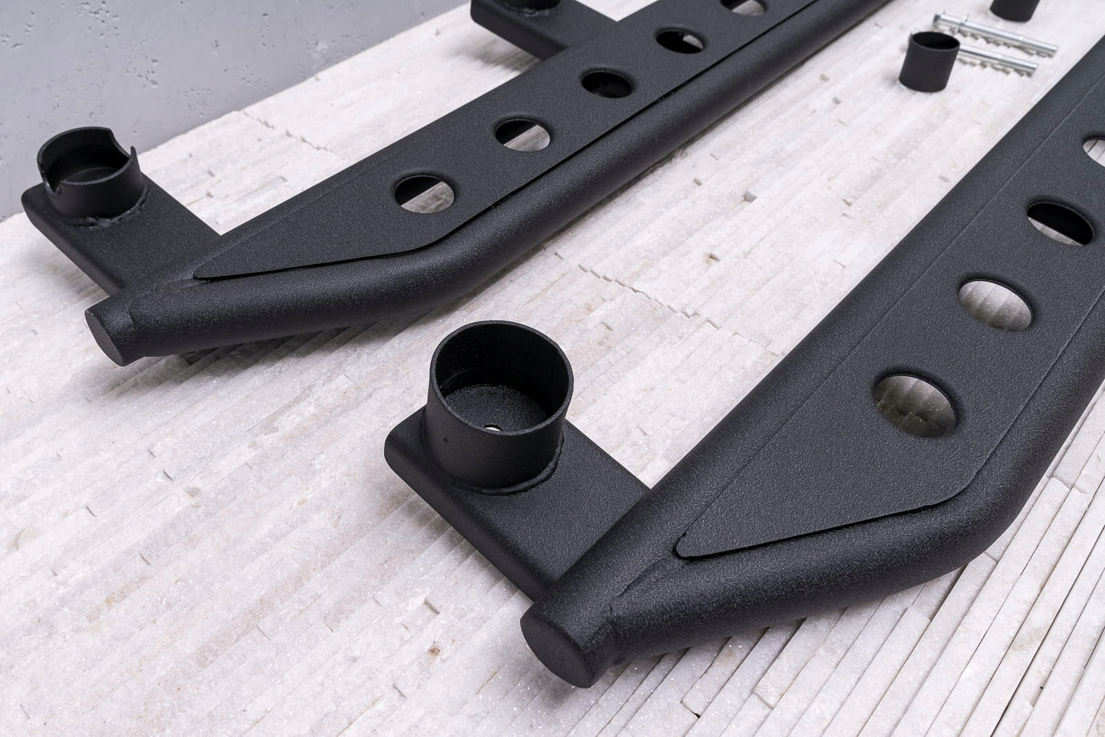 Спеціально розроблені для Jeep Wrangler JL 2018+ бічні труби унікальним чином підкреслюють потужний зовнішній вигляд автомобіля, водночас пробуджуючи позашляховий характер автомобіля. Доповнюючи стилістичну лінію кузова, вони відіграють важливу функціональну роль, спрощуючи посадку та висадку з автомобіля з високою посадкою.