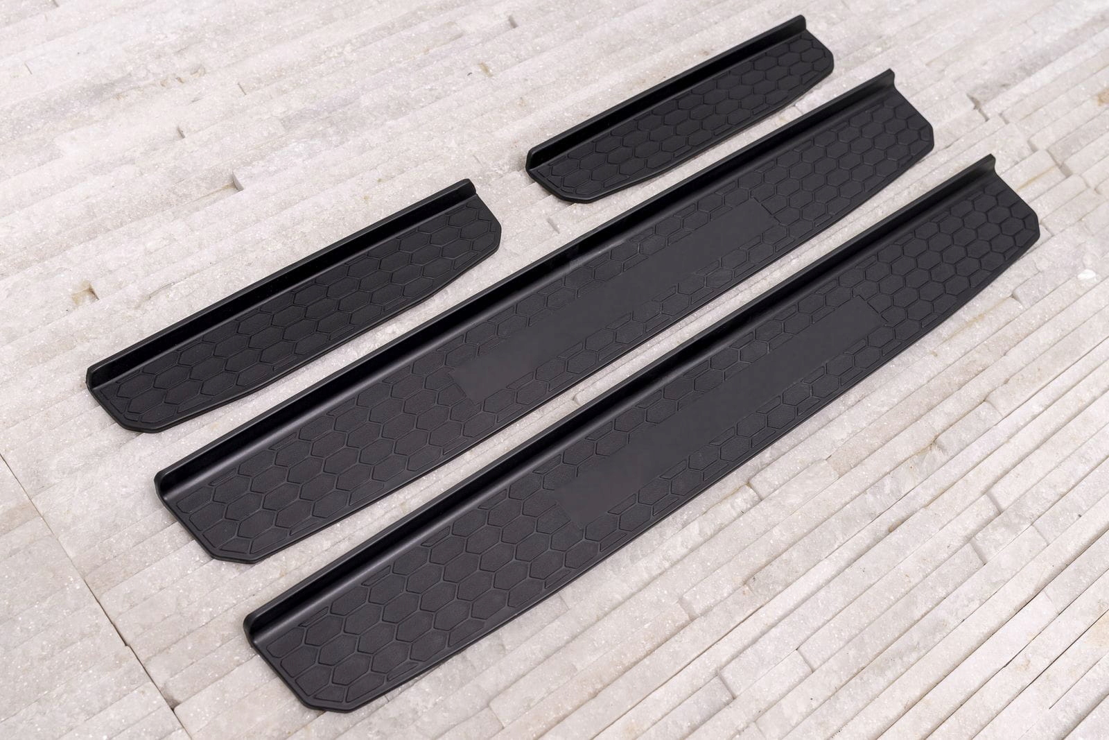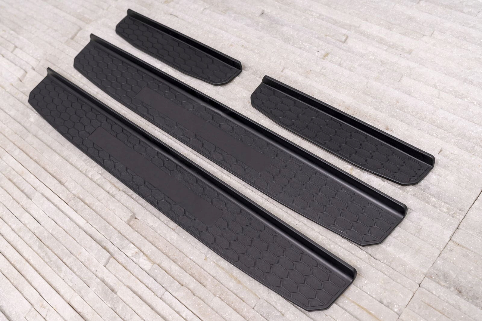 Крім своїх оптичних властивостей, вони виконують функціональну захисну роль, захищаючи пороги від подряпин і механічних пошкоджень, особливо під час входу та виходу. Вони виготовлені з високоякісного чорного автомобільного пластику ABS, що робить їх стійкими до погодних умов, хімікатів і механічних пошкоджень.