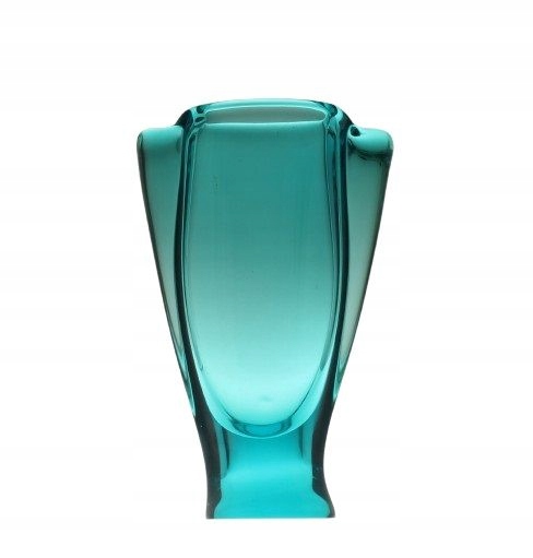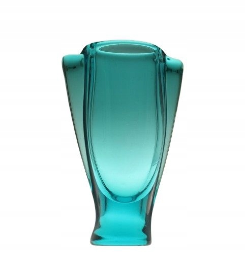 Ваза зі скла ручного формування, пофарбованого в масі в колір моря. Він походить із заводу Железний Брод у Чехословаччині. Каталожний номер 70020, 1960-ті роки.