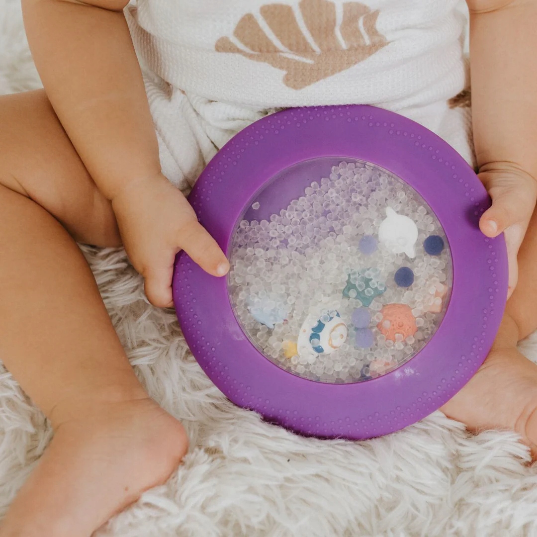 Peekaboo - A-Ku-Ku! - це сенсорна іграшка у формі закритого, гнучкого диска, наповненого безпечними м'якими тематичними фігурками. Через прозоре віконце дитина може розглядати, рухатися та шукати приховані елементи, розвиваючи концентрацію, координацію рук і очей і дрібну моторику. Сумка ідеально підходить для ігор вдома, в машині, в кімнаті очікування - скрізь, де ваш малюк потребує спокійного та захоплюючого заняття. Це безпечно для найменших - світ тварин, рослин і космосу щільно замкнуті в сенсорному диску.
