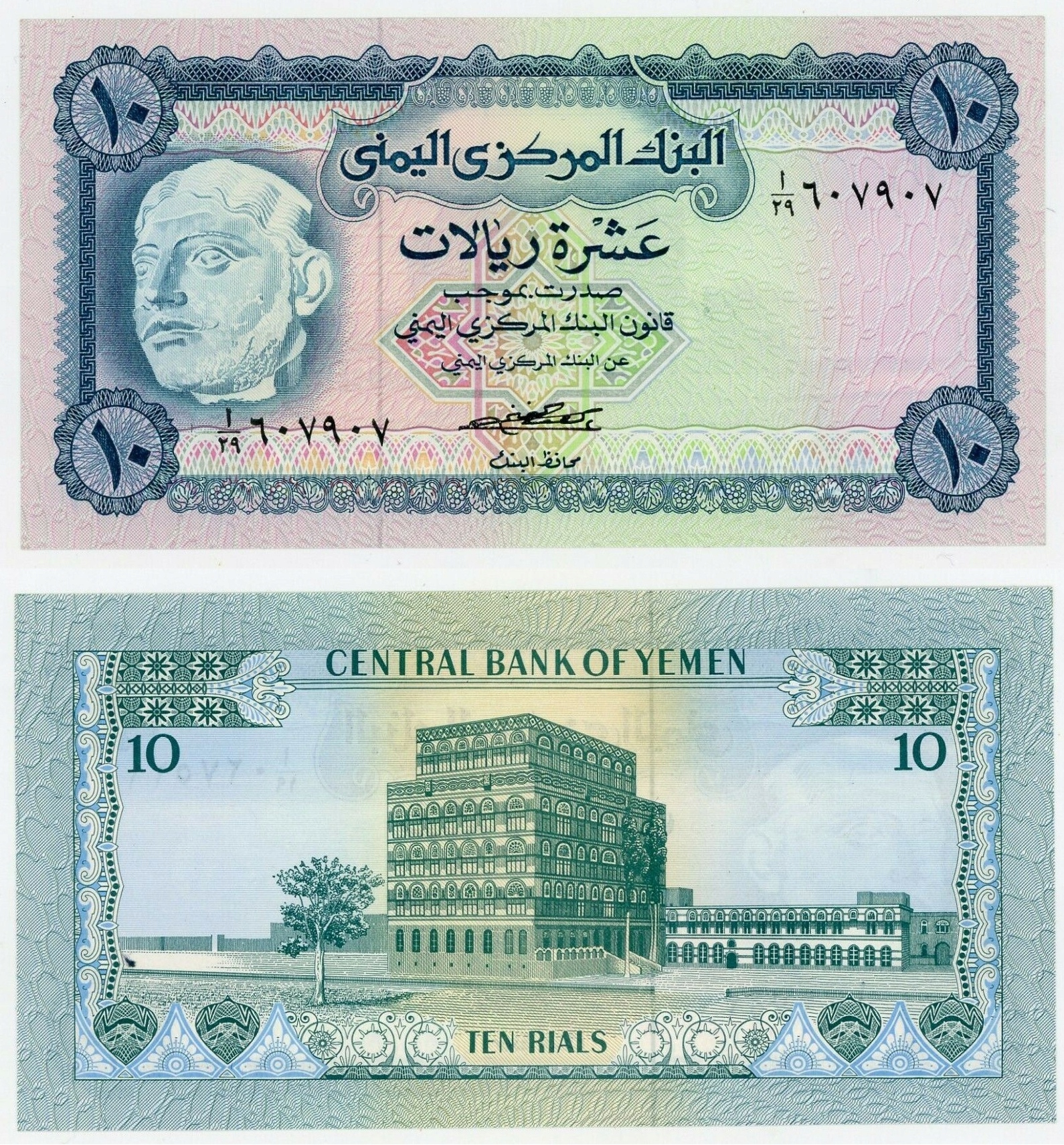 Красива банкнота 10 ріалів з Ємену 1973 року. (P-13a) в абсолютно ідеальному береговому стані I (UNC).