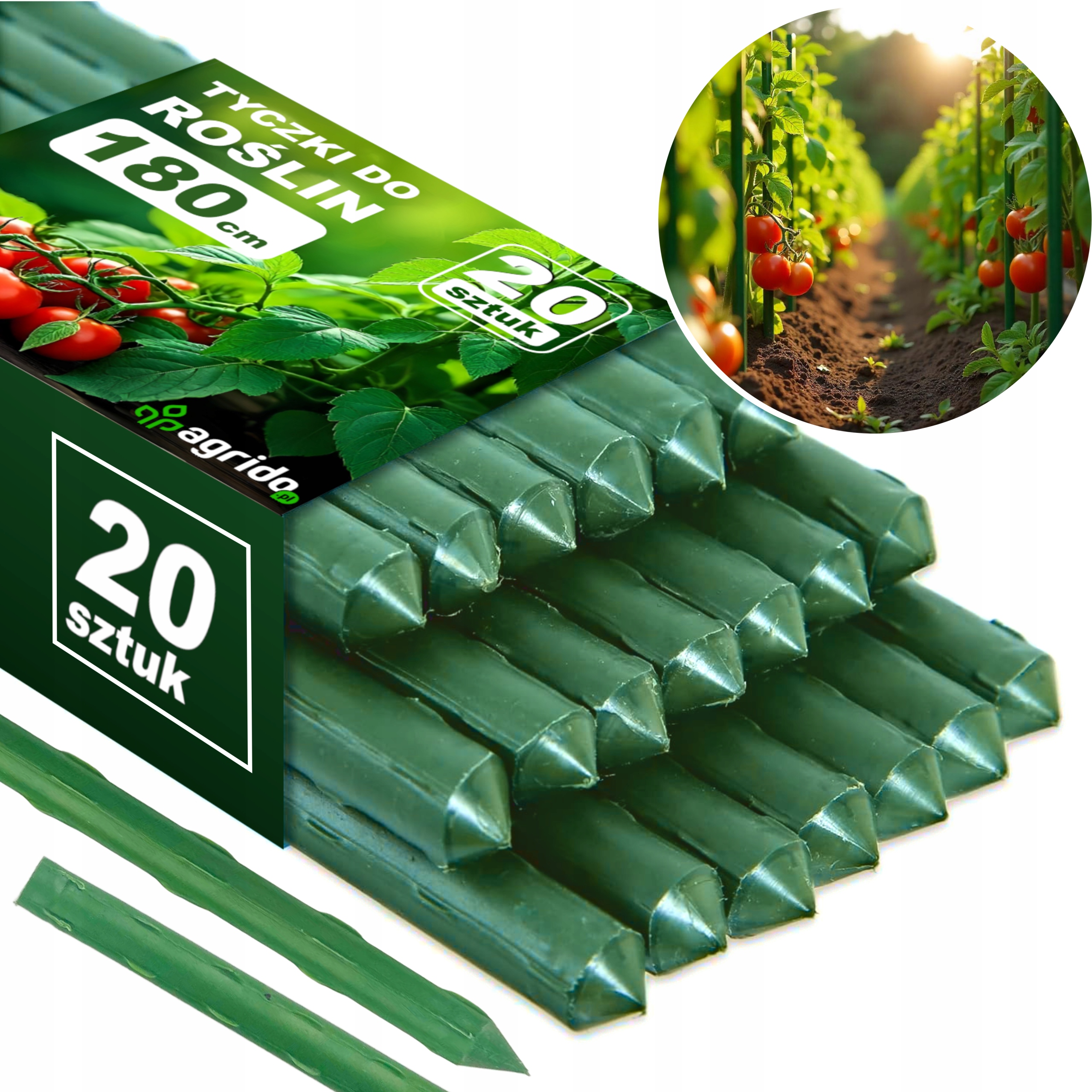 ЖЕРДИНИ ДЛЯ ПОМІДОРІВ РОСЛИН КІЛКИ ОПОРА 180см 20шт