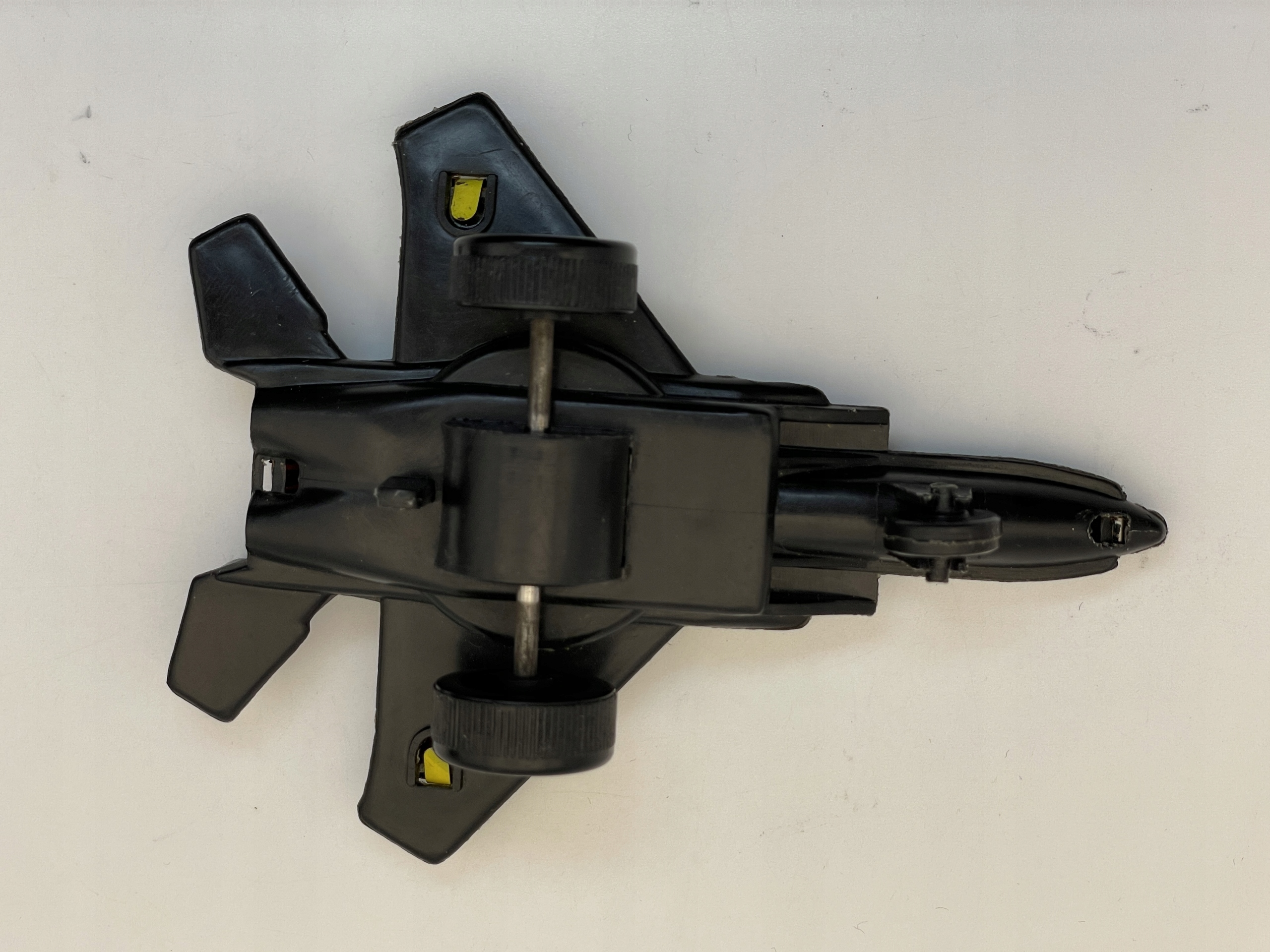Цей ресорак зображує футуристичний реактивний літак, який привертає увагу завдяки своїм яскравим кольорам і додатковому компасу на задній частині. Модель виконана з металу і пластику, що робить її міцною. Його стан хороший, незважаючи на легкі подряпини, що робить його привабливим для колекціонерів, які цінують моделі з історією.