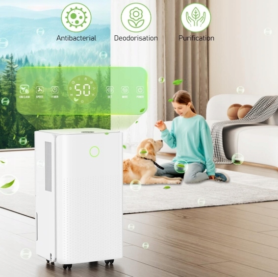 - Покращте домашній комфорт: наш високоефективний компресорний осушувач був ретельно розроблений, щоб оптимізувати комфорт у вашому домі в приміщеннях до 100 м³. Цей великий осушувач має іонну функцію, яка не тільки осушує, але й ефективно видаляє запахи, очищає повітря та покращує якість повітря у вашому домі. Крім того, він оснащений блокуванням від дітей, що забезпечує безпеку під час використання.