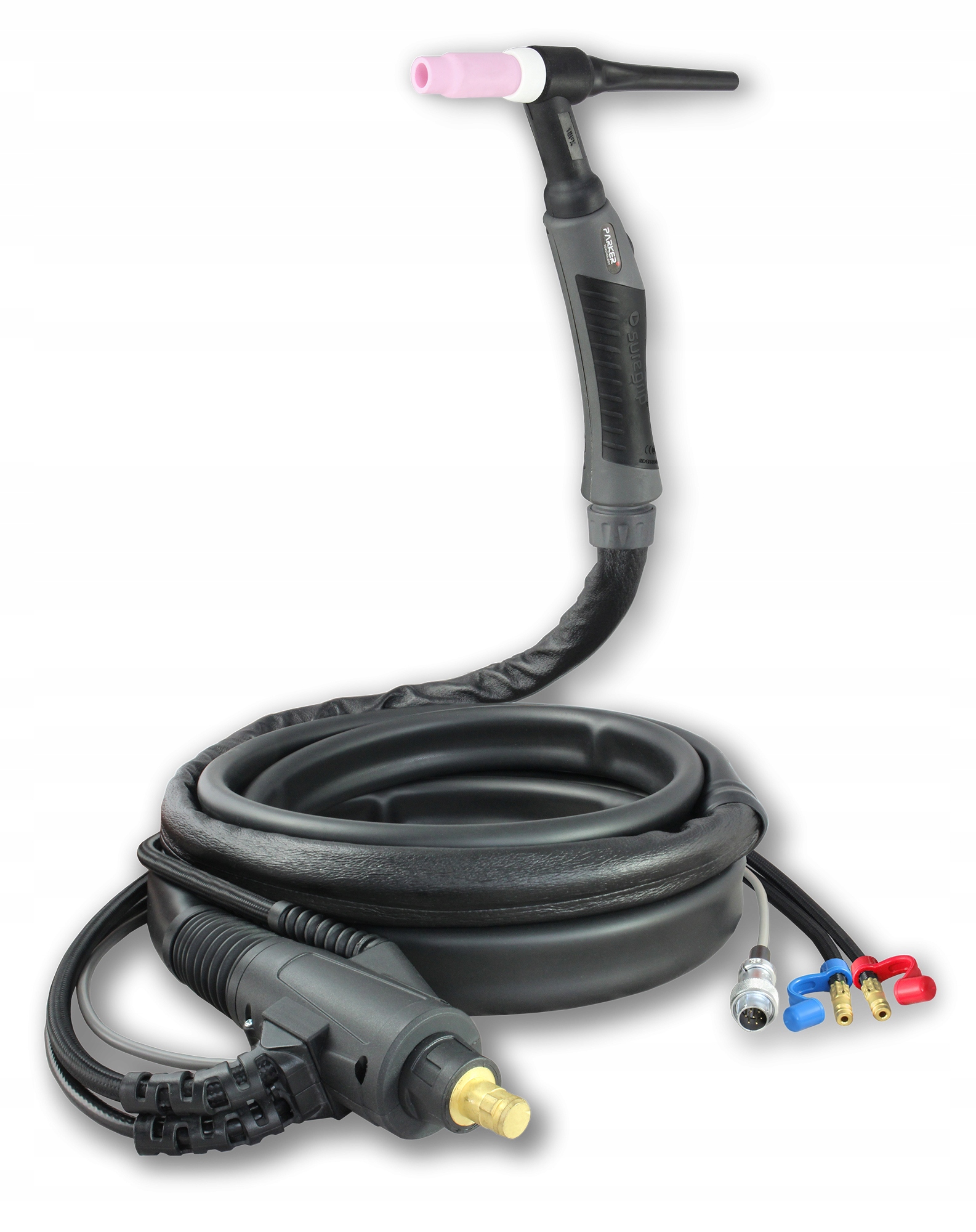 - Зварювальник постачається з першокласним зварювальним пальником з рідинним охолодженням:TIG PARKER SUREGRIP SGT18 FLEX 4m