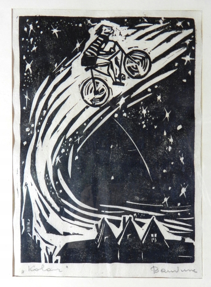 Єжи Бандура (1915-87) «Велосипедист», дереворит/пап