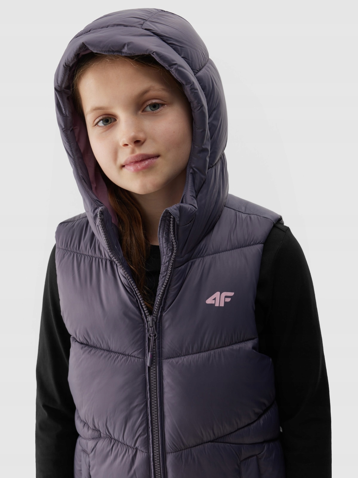 Пухова жилетка 4F з наповнювачем синтепон, дівчинка - сіра