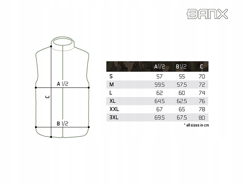 Спереду застібка - якісна блискавка, захищена додатковим шаром матеріалу, що підвищує стійкість до зовнішніх умов. З обох боків місткі кишені для рук або необхідних аксесуарів. Жилет BANX також має піднятий комір, який забезпечує кращий захист шиї та шиї при низьких температурах.