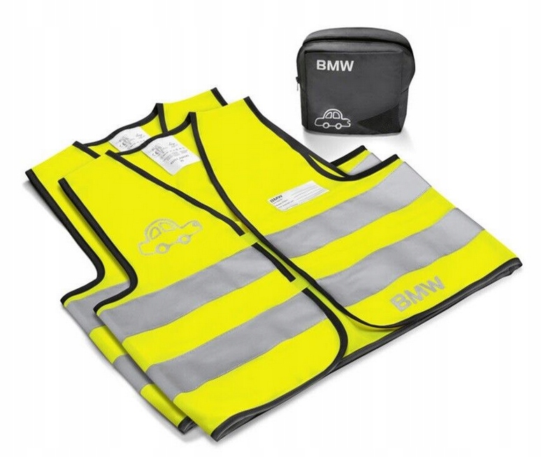 Дитячий світловідбиваючий жилет BMW складається з комплекту з двох жилетів. в сумці для зберігання. З характерними відбивачами спереду та ззаду та написом BMW спереду.