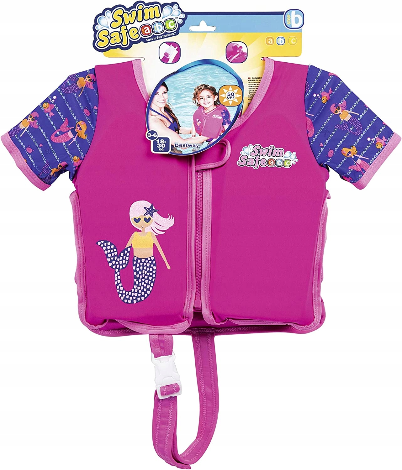 Житний жилет забезпечить безпеку дітей під час гри у воді. Він був виготовлений із зручної тканини і зшила вставки з піни. Регульована пряжка та ремінь дозволяють відповідати жилетам. Міцна блискавка із захисним клаптям після закриття гарантує безпеку під час купання. Жилет був перевірений на переміщення.