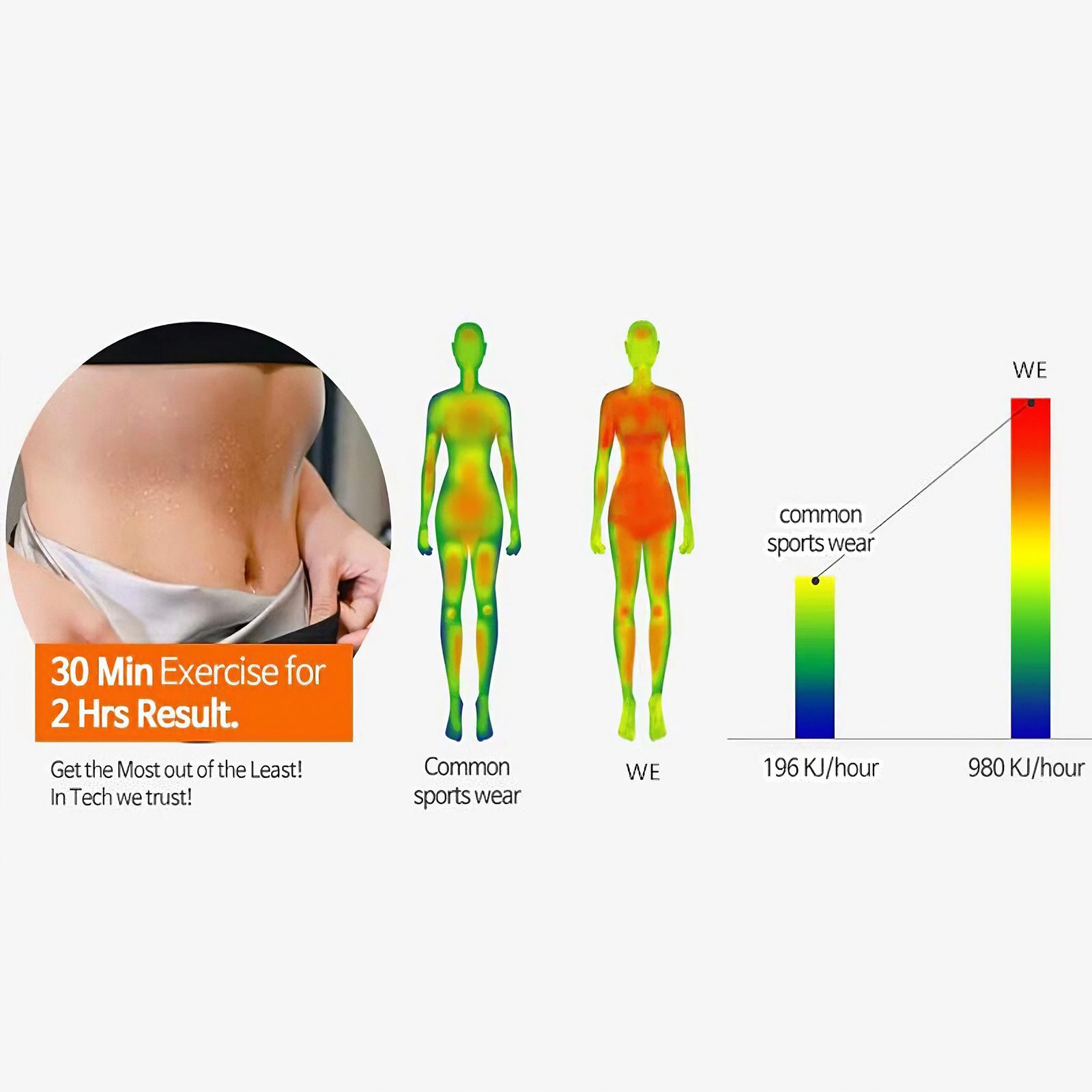 - Цей костюм для фітнес-сауни, виготовлений із теплозберігаючої полімерної тканини та молочної тканини, зручний, м’який, міцний і зменшує натирання.