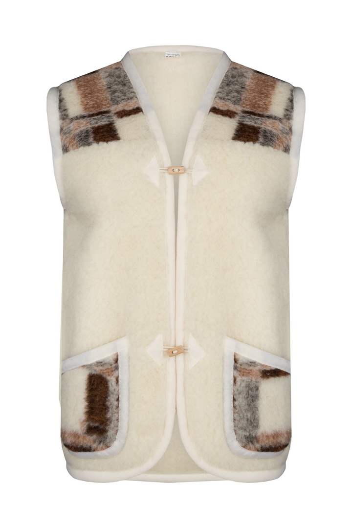 Вироби з використанням овечої вовни - це поєднання новітніх текстильних технологій з унікальним ефектом вовняного волокна. Вовна, як єдине натуральне волокно, має здатність негайно забезпечувати та підтримувати належний рівень тепла для всіх тканин. Гігроскопічність вовни сприяє поглинанню надлишкової вологи, а особлива структура волосся забезпечує оптимальний повітрообмін між нашим тілом і навколишнім середовищем. Відкрийте для себе надзвичайний благотворний вплив вовни, використовуючи наші продукти! Візерунки на кишенях і верхній частині жилета можуть мати різну інтенсивність і розташування.