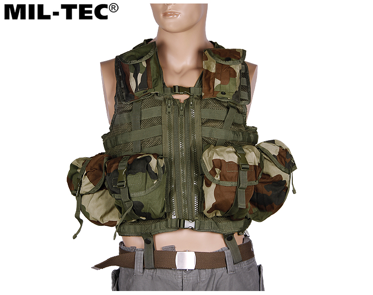 Професійний тактичний жилет в модульній системі 25 мм MOLLE німецької компанії Mil-Tec. Військова специфікація - чудова якість виготовлення та найкращі матеріали (100% нейлон). Перевірені в бойових умовах, цінуються за високий комфорт і надійність. Універсальний, призначений для зеленої тактики (у польових умовах) і MOUT (тобто урбанізованих).