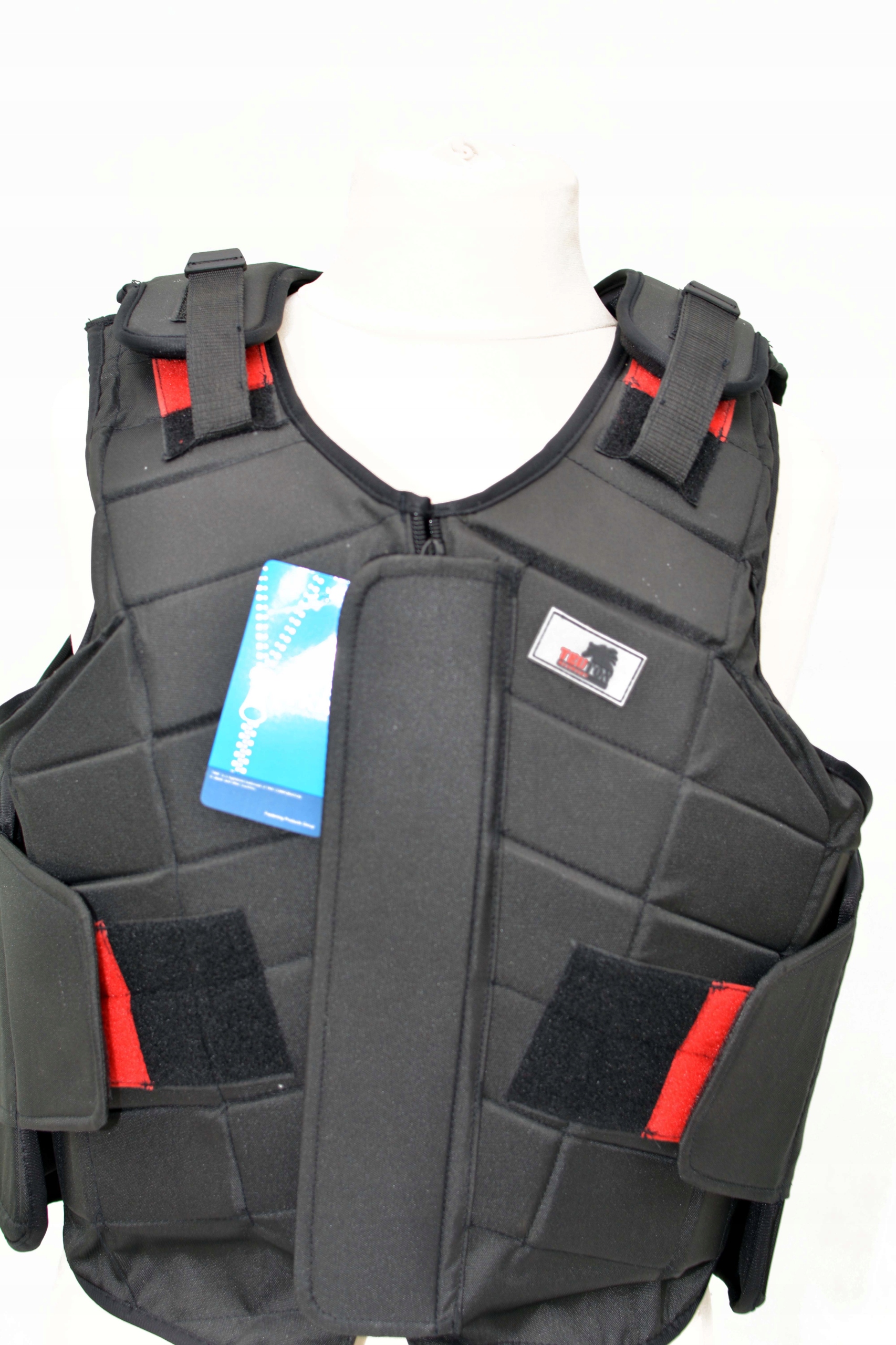 Розмір захисного кінного жилета. L років, жилет виготовлений з дуже якісного матеріалу, амортизуючий ПВХ, зовнішній матеріал - поліестер.Жилет має сертифікат рівня 3, що означає, що він призначений для регулярних прогулянок верхи або змагань.Якість і якість виготовлення жилетка дуже хороша.Супер