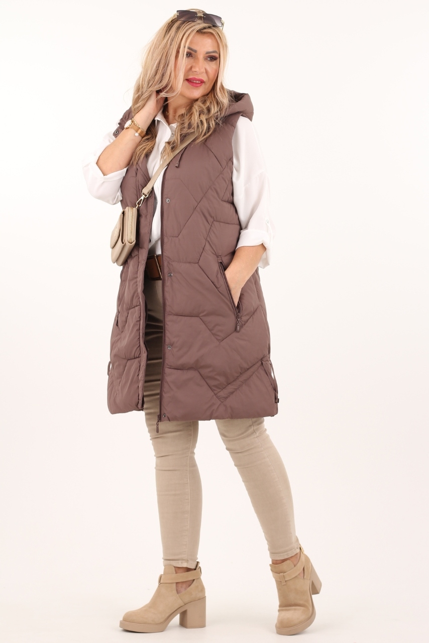 Довгий високий високий перехідний жилет з стьобаною капюшоном