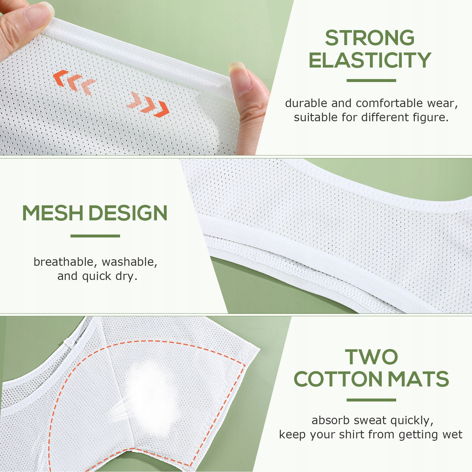 Легкий і дихаючий, міцний і гнучкий жилет із захистом від поту є одним із найкращих варіантів. Використаний преміальний матеріал, вони зручні в носінні. Вони ефективно запобігають намокання футболки від поту. Ідеально підходить для жінок під час літніх заходів на свіжому повітрі, таких як біг підтюпцем, ходьба, біг тощо.