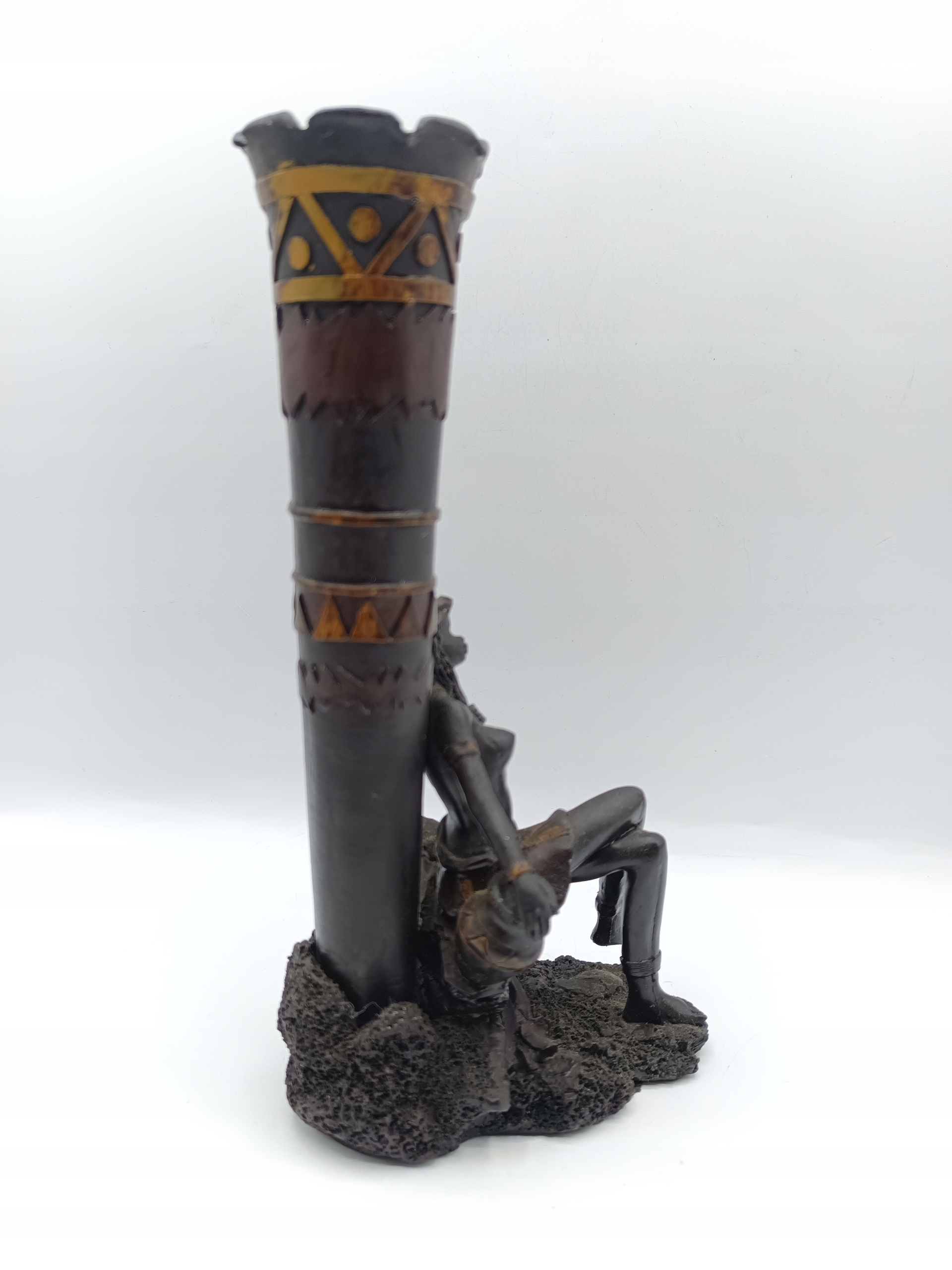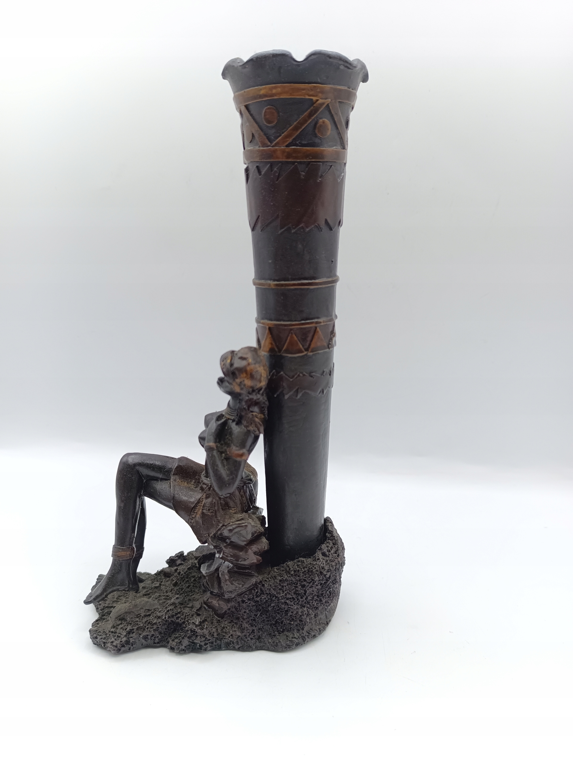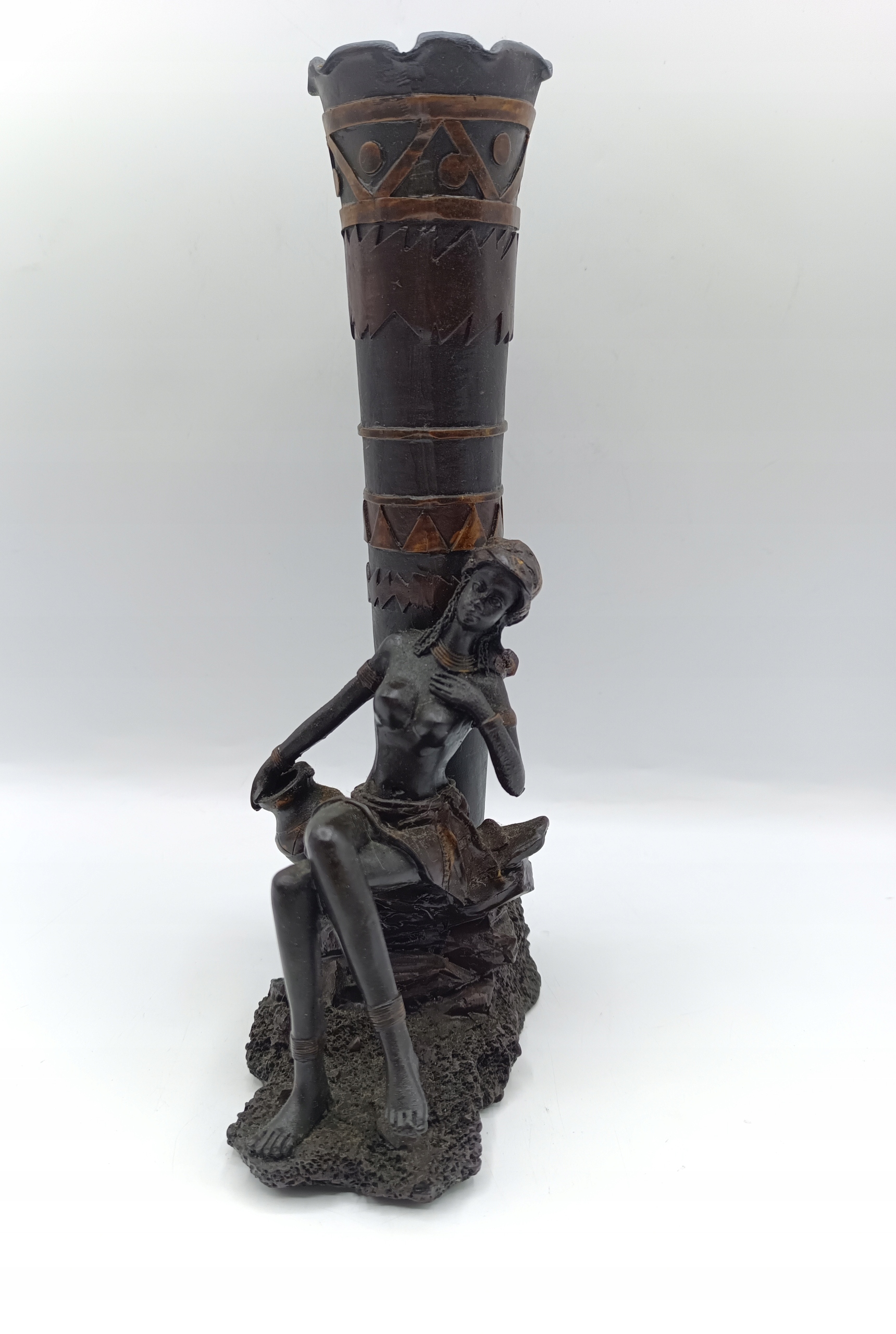 Жінка сидить під колоною, цікавий свічник/ваза - вінтаж