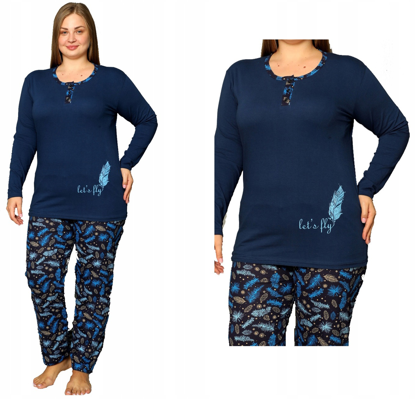 ЖІНОЧА БАВОВНОВА ПІЖАМА З ДОВГИМ РУКАВОМ І ДОВГИМИ ШТАНАМИ ВЕЛИКОГО РОЗМІРУ 3XL