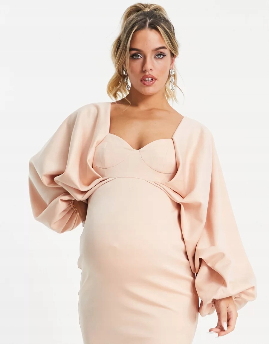 ЖІНОЧА БЕЖЕВА КОКТЕЙЛЬНА СУКНЯ ДЛЯ ВАГІСЛИХ
