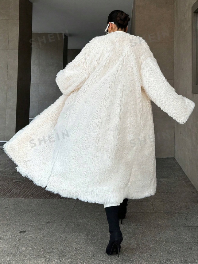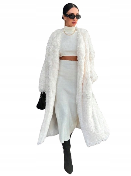 ЖІНОЧА БІЛА ДОВГА ПРЯМА ЗИМОВА ШУБА M ŁK