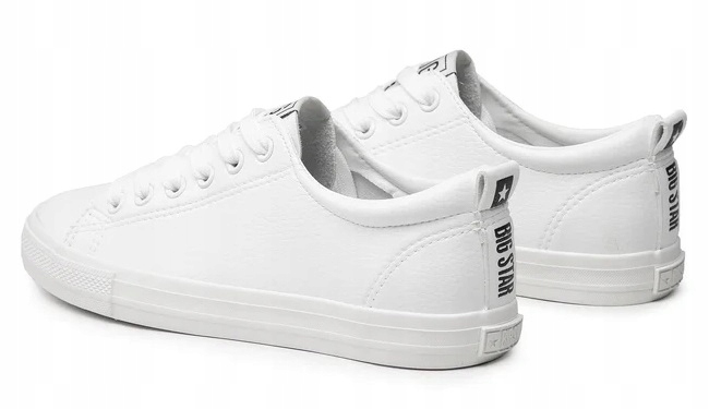4 B> Жіночі кросівки, виготовлені з еко -літер Практичні шнурування сприяють повсякденному використанню та гарантують правильний вибір Лікування Взуття для молоді Big Star у класичному білому кольорі плоский, гумовий підошва, надзвичайно комфортний і стійкий до споживання Вставка та підкладка - це міцний стійкий матеріал.