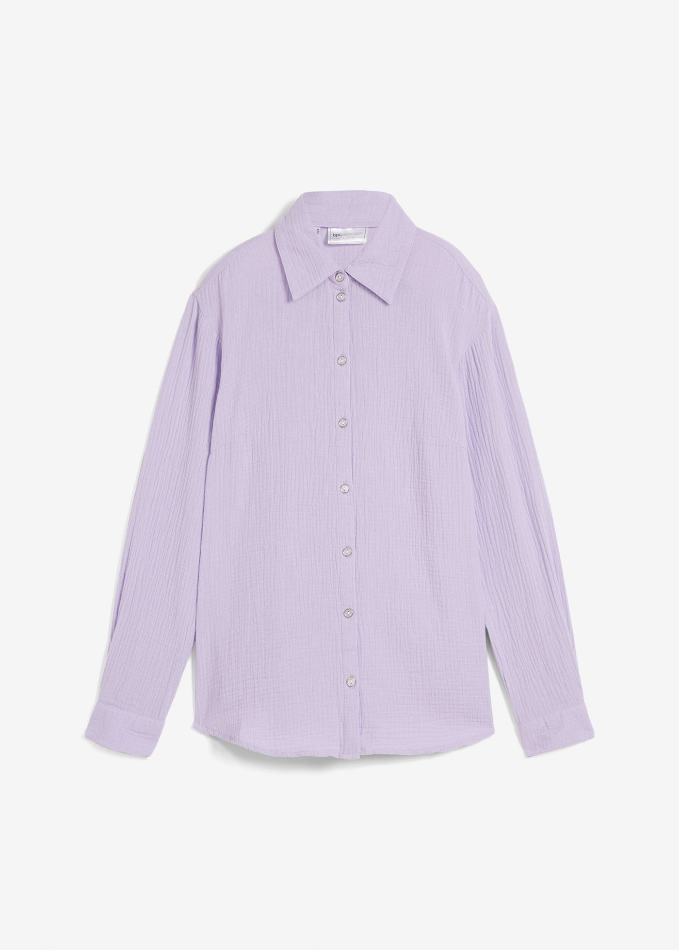 ЖІНОЧА БЛУЗА-СОРОЧКА МУСЛІНОВА З КОМІРОМ З НАПИСОМ 40, ФІОЛЕТОВА