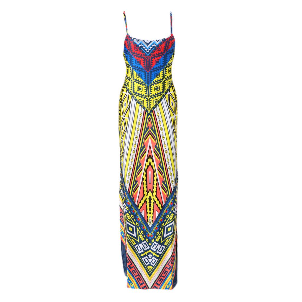 Жіноча довга літня вечірня довга сукня в стилі бохо з розрізом XL, жовта