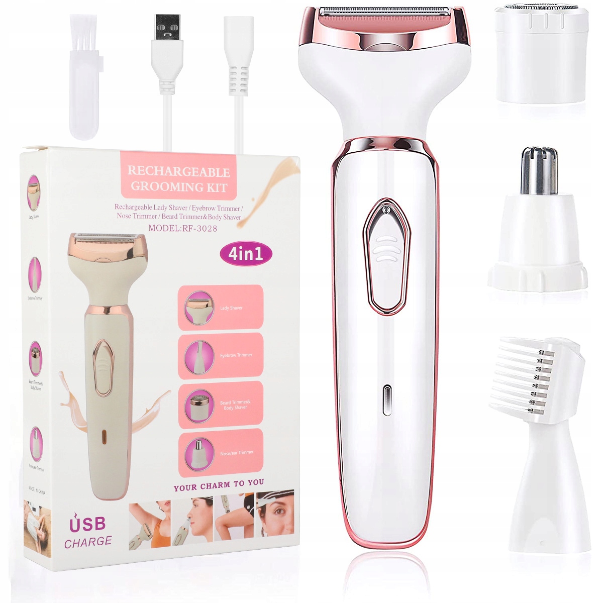 4 -го набору електричних бритви містить 4 багатофункціональні заміни гоління, які можуть негайно видалити волосся з обличчя, руки, бікіні, ніс, сорочки та інші частини, завдяки якому шкіра є більш глузлим, тому вам не потрібно турбуватися про надолі волосся на будь -якому місці.