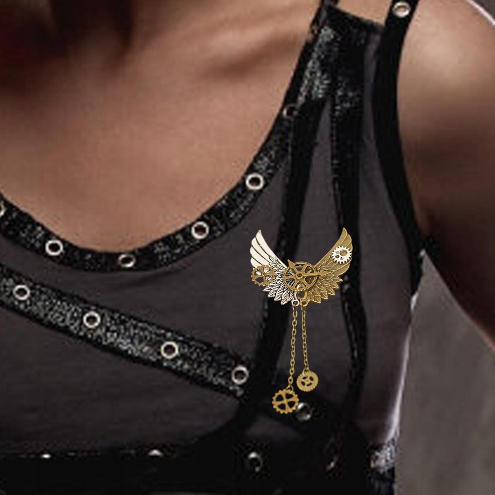 Брошка з крилами ангела, костюм на Хеллоуїн, металевий ланцюжок, брошки з китицями, значок із шестернями