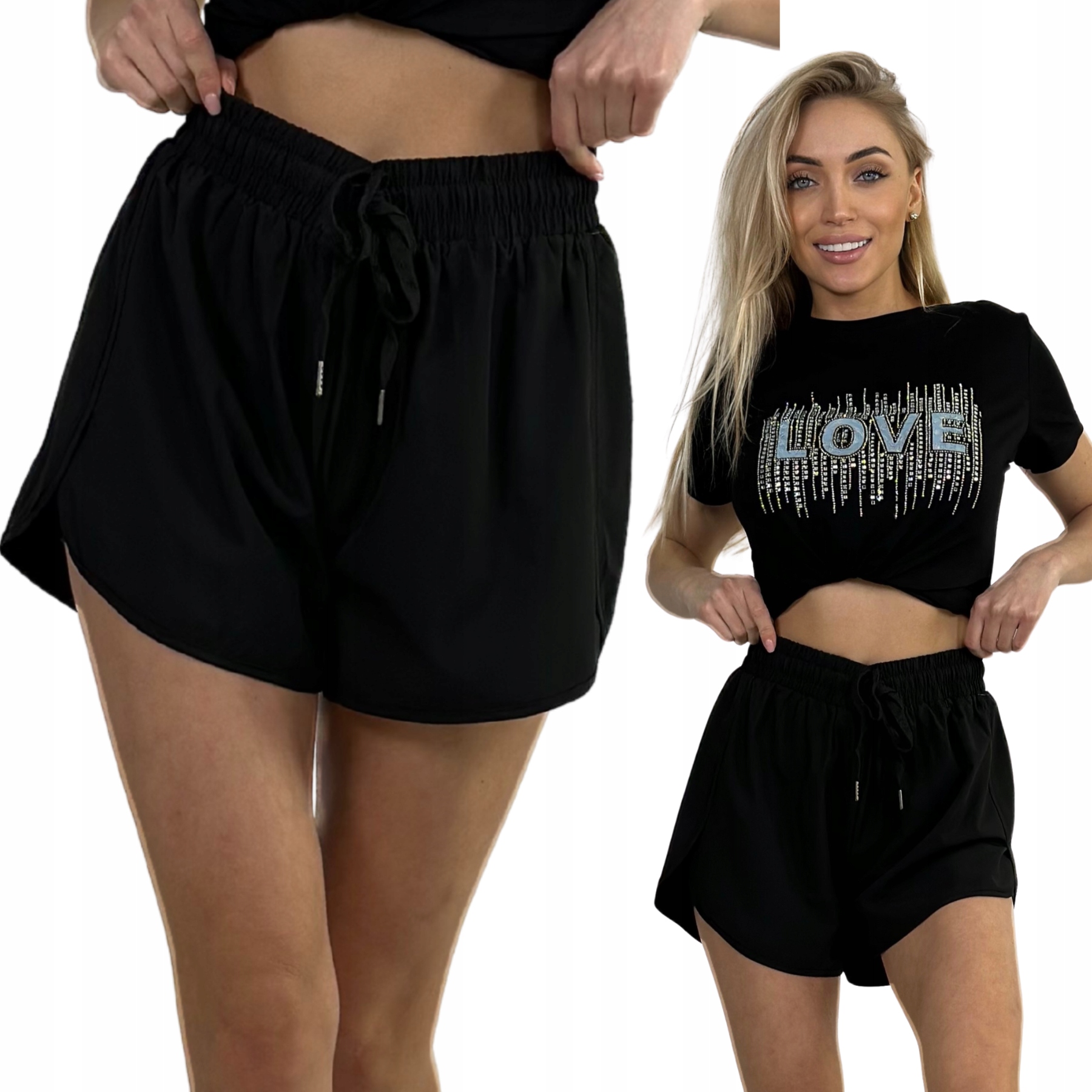 Жіноча чорна бавовна T -сорочка та чорні спортивні шорти