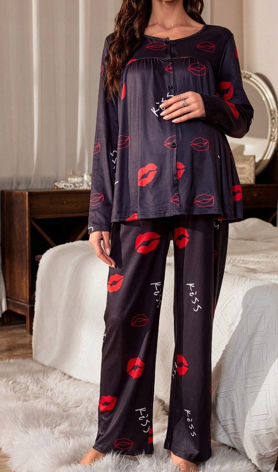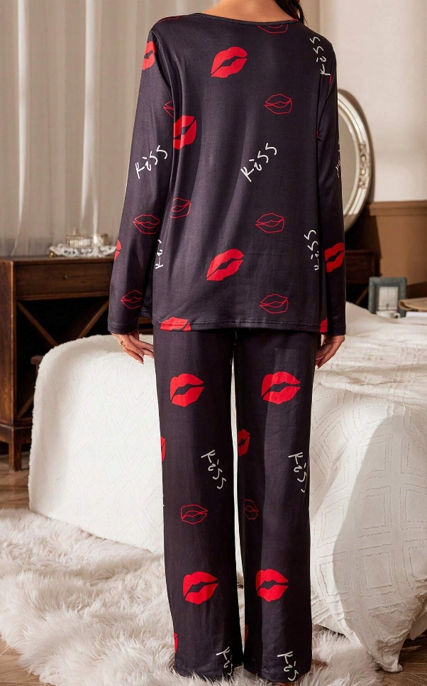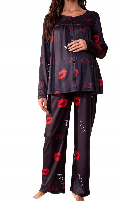 ЖІНОЧА ЧОРНА ПІЖАМА КОМПЛЕКТ ДЛЯ ВАГІСТНИХ, ВИЗІРУНОК L. L