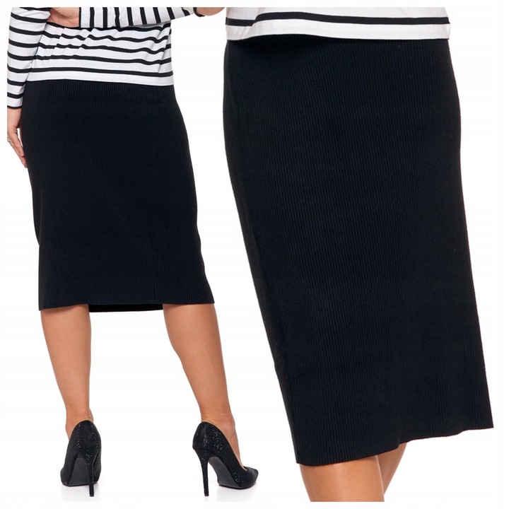 Елегантна жіноча спідниця-олівець міді в рубчик чорного кольору – це класика, яка повинна бути в гардеробі кожної жінки. Виготовлена з еластичної тканини в рубчик, ідеально сидить по фігурі, делікатно підкреслюючи жіночні форми. Ребриста структура матеріалу додає спідниці елегантності, а класичний чорний колір робить її надзвичайно універсальною та легкою для поєднання з багатьма елементами гардеробу.