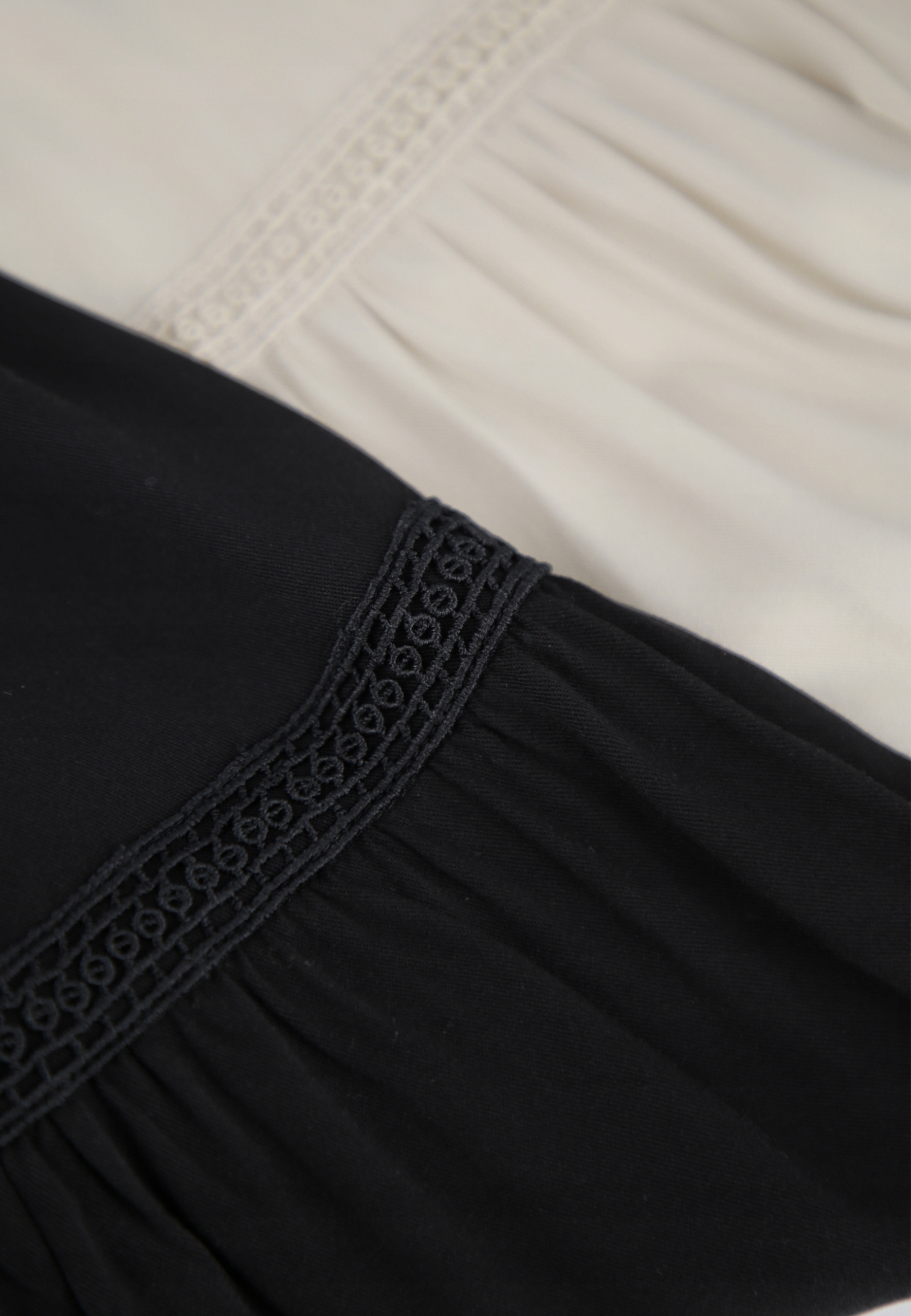 Літня спідниця G-Flavia прикрашена тонким мереживом , яка відрізає спідниці, як два надмірності. Це додає свого романтичного характеру, тоді як вирізаний зліва тонко розкриває ногу.
