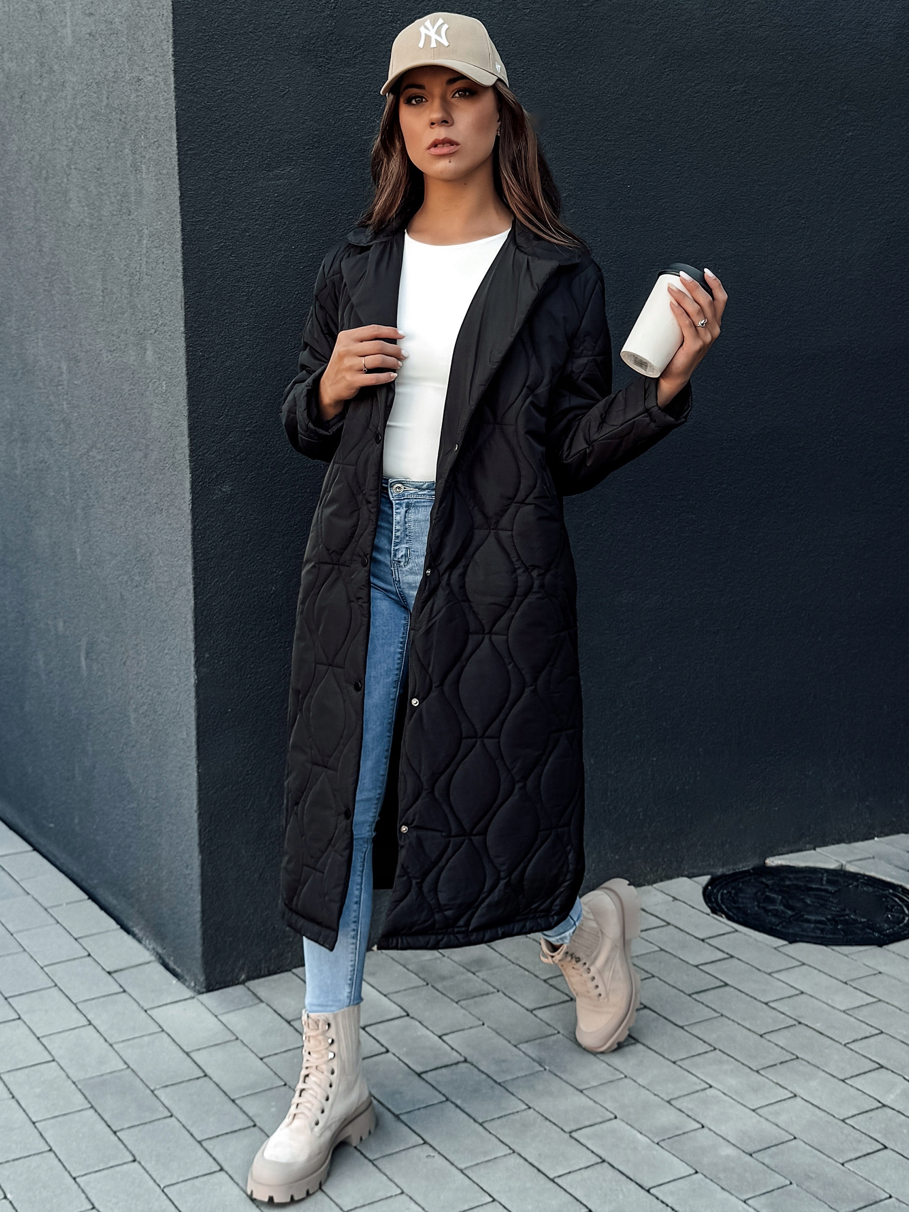 ЖІНОЧА ДОВГА СТЕГАНА ОСІННЯ КУРТКА/ПАЛЬТО, ЧОРНА ty4378