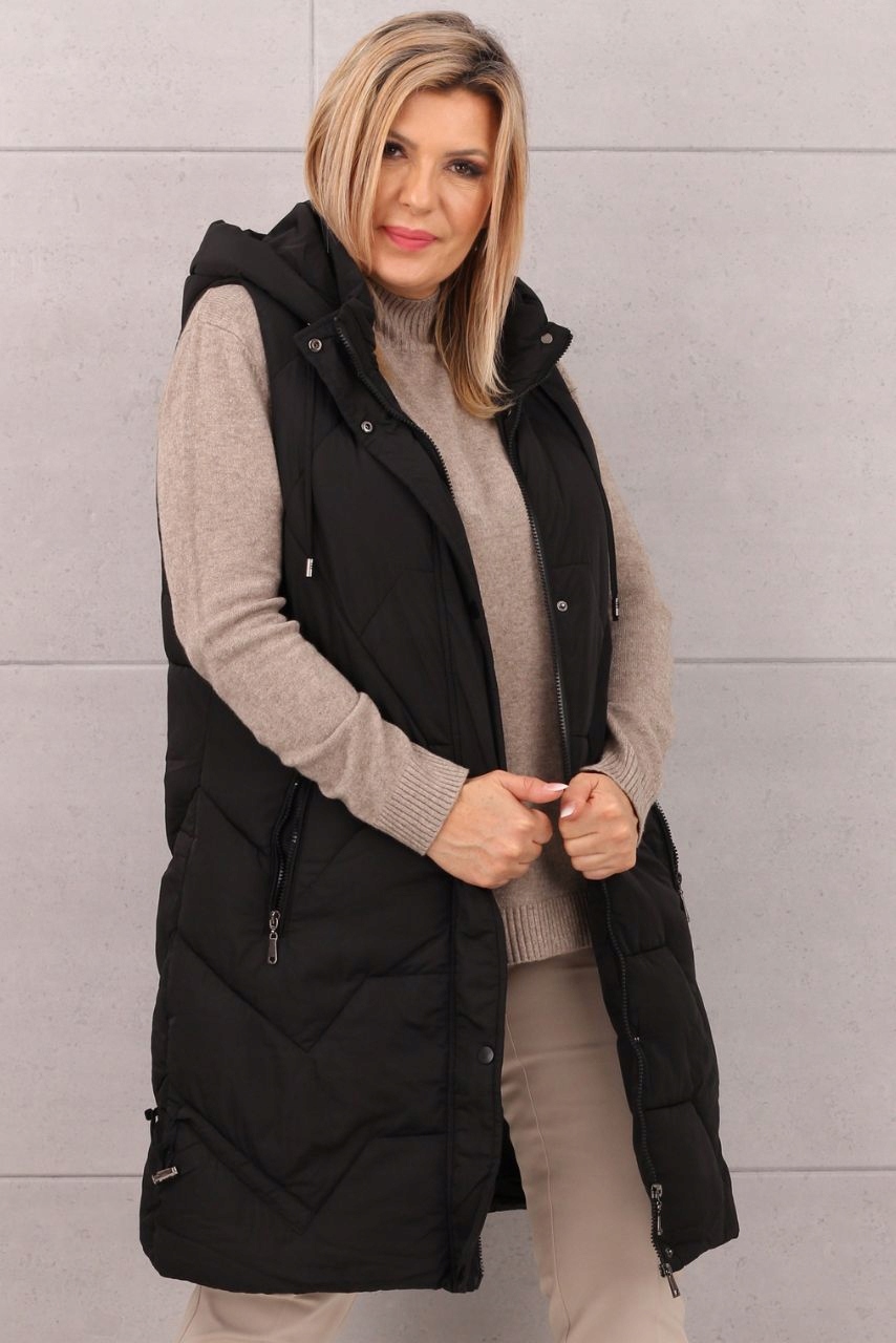 Цей сучасний довгий стьобаний жилет — справжня перлина у світі моди. Його різноманітне стьобання не тільки створює ефектний візерунок, але й делікатно струнює фігуру, надаючи їй витонченості та стрункості. Ця жилетка є ідеальним вибором для холодних днів, забезпечуючи теплий комфорт без шкоди для стилю. Це одяг, який поєднує тепло з неперевершеною свободою рухів, створюючи ідеальний бар’єр від холоду.